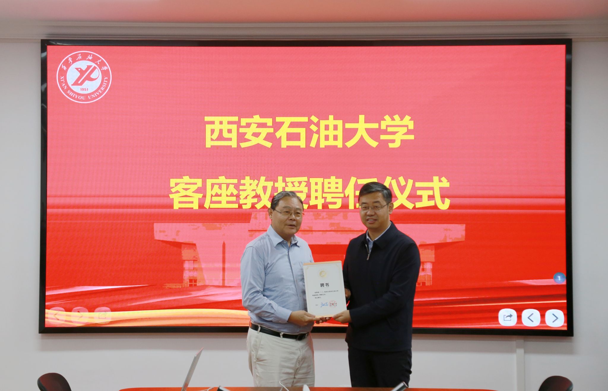 聘任儀式前,校長(zhǎng)王進(jìn)富在鄠邑校區(qū)貴賓室與鄒進(jìn)教授進(jìn)行了親切會(huì)談,對(duì)鄒教授的到來(lái)表示誠(chéng)摯歡迎,并就學(xué)校紅色基因與石油精神傳承、校園文化建設(shè)、學(xué)科優(yōu)化布局、人才隊(duì)伍建設(shè)等方面進(jìn)行交流,期待鄒進(jìn)教授能夠充分發(fā)揮專業(yè)優(yōu)勢(shì)與學(xué)術(shù)國(guó)際影響力,提升學(xué)校學(xué)科發(fā)展水平。