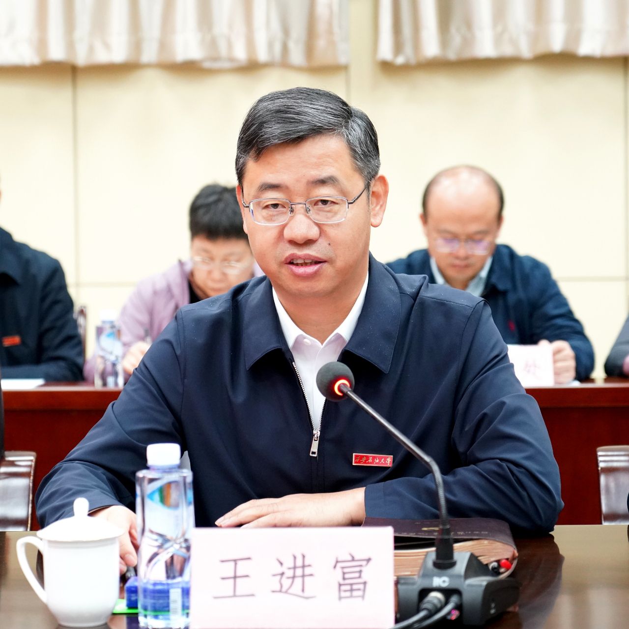 王進(jìn)富首先代表學(xué)校致歡迎辭,并向以李陽院士為代表的各位學(xué)術(shù)委員會委員及嘉賓的蒞臨指導(dǎo)表示熱烈歡迎和衷心感謝。他指出,邊際油氣資源的高效開發(fā),是保障國家能源安全、筑牢能源戰(zhàn)略屏障的關(guān)鍵領(lǐng)域,更是國家能源戰(zhàn)略布局中的必爭高地。學(xué)校成立邊際油氣開發(fā)技術(shù)研究院學(xué)術(shù)委員會,是主動對接國家重大能源需求、深化學(xué)科內(nèi)涵式發(fā)展、踐行高校服務(wù)國家戰(zhàn)略使命的關(guān)鍵舉措。他希望,邊際油氣開發(fā)技術(shù)研究院學(xué)術(shù)委員會能充分發(fā)揮高端智庫優(yōu)勢與行業(yè)引領(lǐng)作用,成為引領(lǐng)研究院發(fā)展方向的“導(dǎo)航儀”和“智囊團(tuán)”,助力研究院產(chǎn)出一批具有重大行業(yè)影響力的原創(chuàng)性成果,培育一批兼具戰(zhàn)略視野、創(chuàng)新能力與實(shí)踐素養(yǎng)的卓越能源人才,為國家邊際油氣資源開發(fā)事業(yè)注入強(qiáng)勁動力。