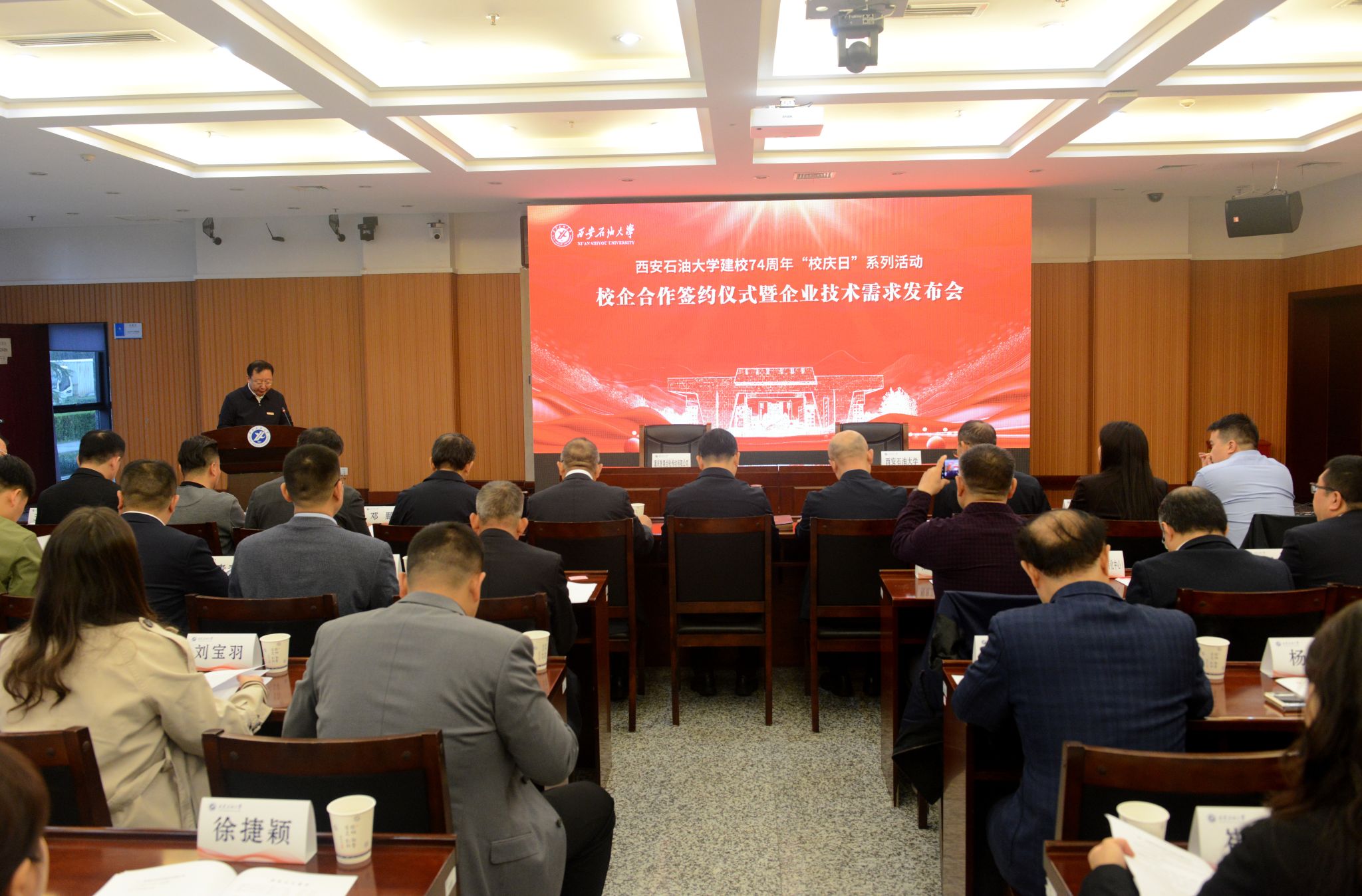 各企業(yè)有關(guān)代表及我校黨委辦公室(校長辦公室)、科研處、校友工作與合作交流處、石油工程學(xué)院、化學(xué)化工學(xué)院、電子工程學(xué)院、機械工程學(xué)院、材料科學(xué)與工程學(xué)院、計算機學(xué)院、繼續(xù)教育學(xué)院負責(zé)同志和科研團隊代表、教師代表參加會議。