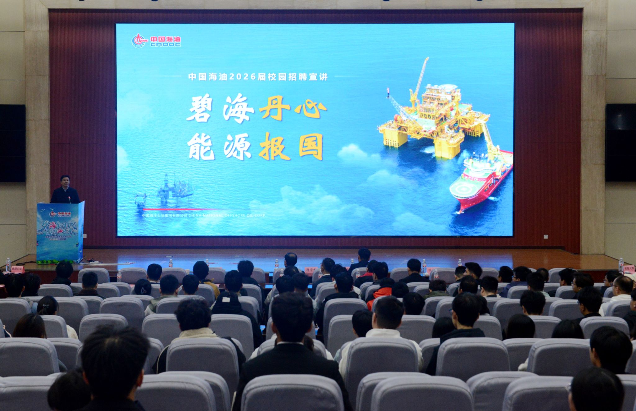 10月21日上午,中國海洋石油集團有限公司2025年秋季校園招聘宣講會在我校鄠邑校區(qū)弘石學術報告廳舉行。副校長種宇宏出席會議。中國海油各單位招聘代表,學校就業(yè)創(chuàng)業(yè)指導中心全體成員,各院(系)學生工作主要負責同志,畢業(yè)班輔導員,2026屆畢業(yè)生代表300余人參加會議。會議由學生工作部(處)部(處)長、就業(yè)創(chuàng)業(yè)指導中心主任王亮主持。
