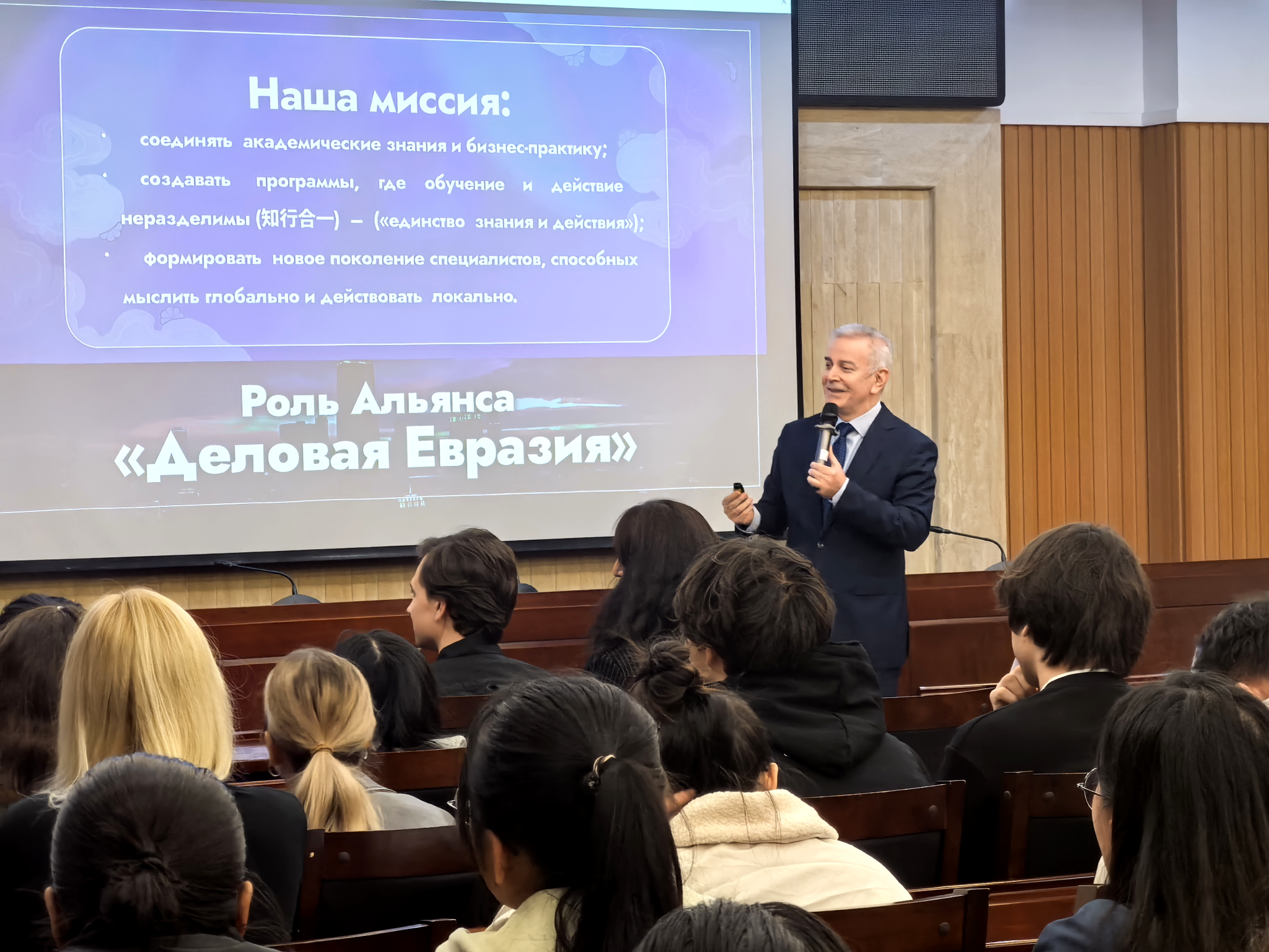 伊姆蘭·阿克佩羅夫在題為《歐亞地區(qū)商業(yè)教育轉(zhuǎn)型研究》的學(xué)術(shù)報(bào)告中,提出當(dāng)代教育的三類重要挑戰(zhàn),即理論與實(shí)踐的脫節(jié)、數(shù)字化轉(zhuǎn)型和跨文化合作,進(jìn)而介紹融合學(xué)術(shù)知識(shí)與商業(yè)實(shí)踐的“歐亞專家”一體化教育新模式。他認(rèn)為中國(guó)在未來世界發(fā)展格局中具有重要影響,鼓勵(lì)師生知行合一,持續(xù)提升國(guó)際視野和創(chuàng)業(yè)思維。