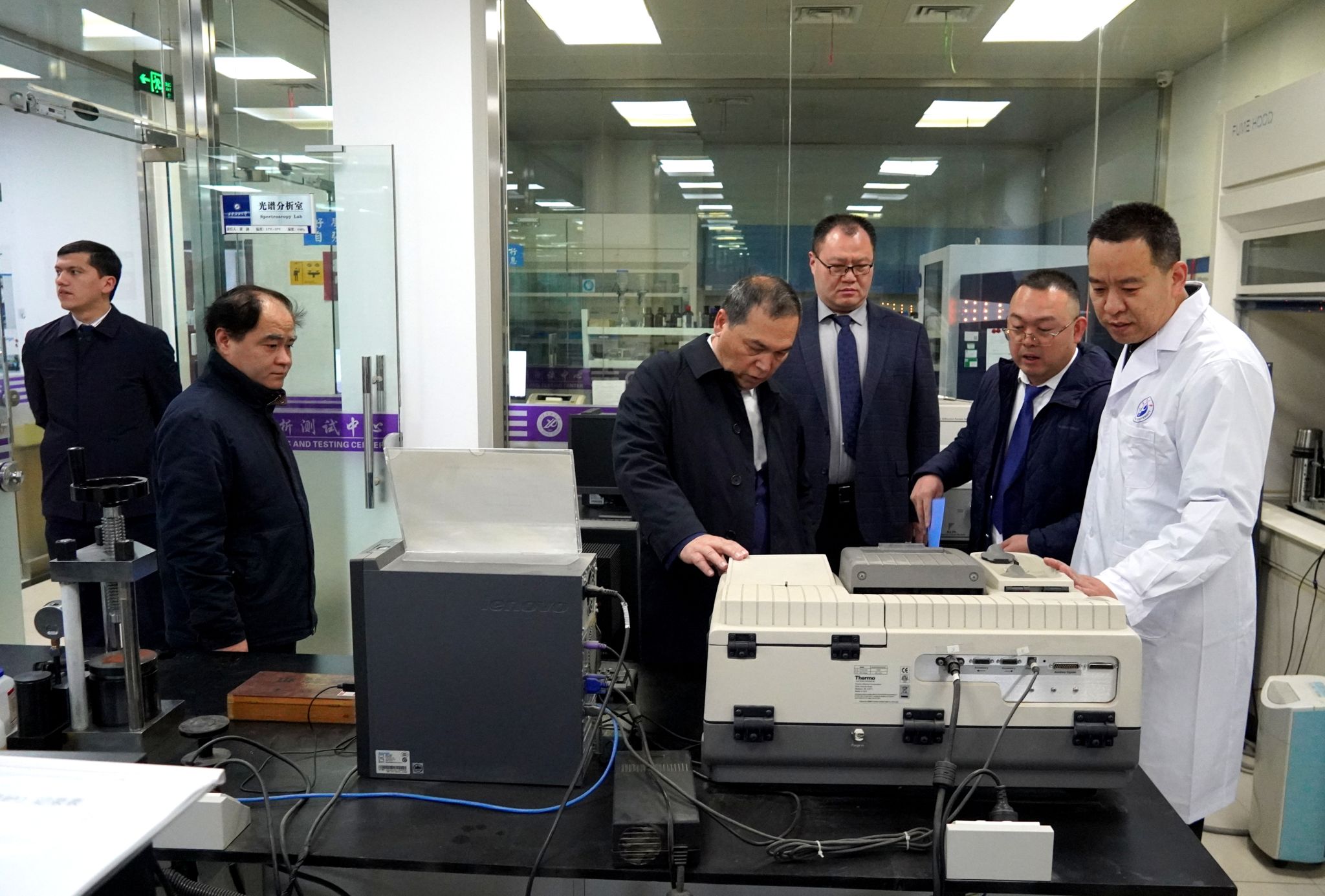 儀式結(jié)束后,烏方嘉賓參觀了化學(xué)化工學(xué)院現(xiàn)代分析檢測中心、開普(Cape)油氣增產(chǎn)技術(shù)研究所,就未來合作與化學(xué)化工學(xué)院教授、實(shí)驗(yàn)室?guī)熒磉M(jìn)行了深入交流。