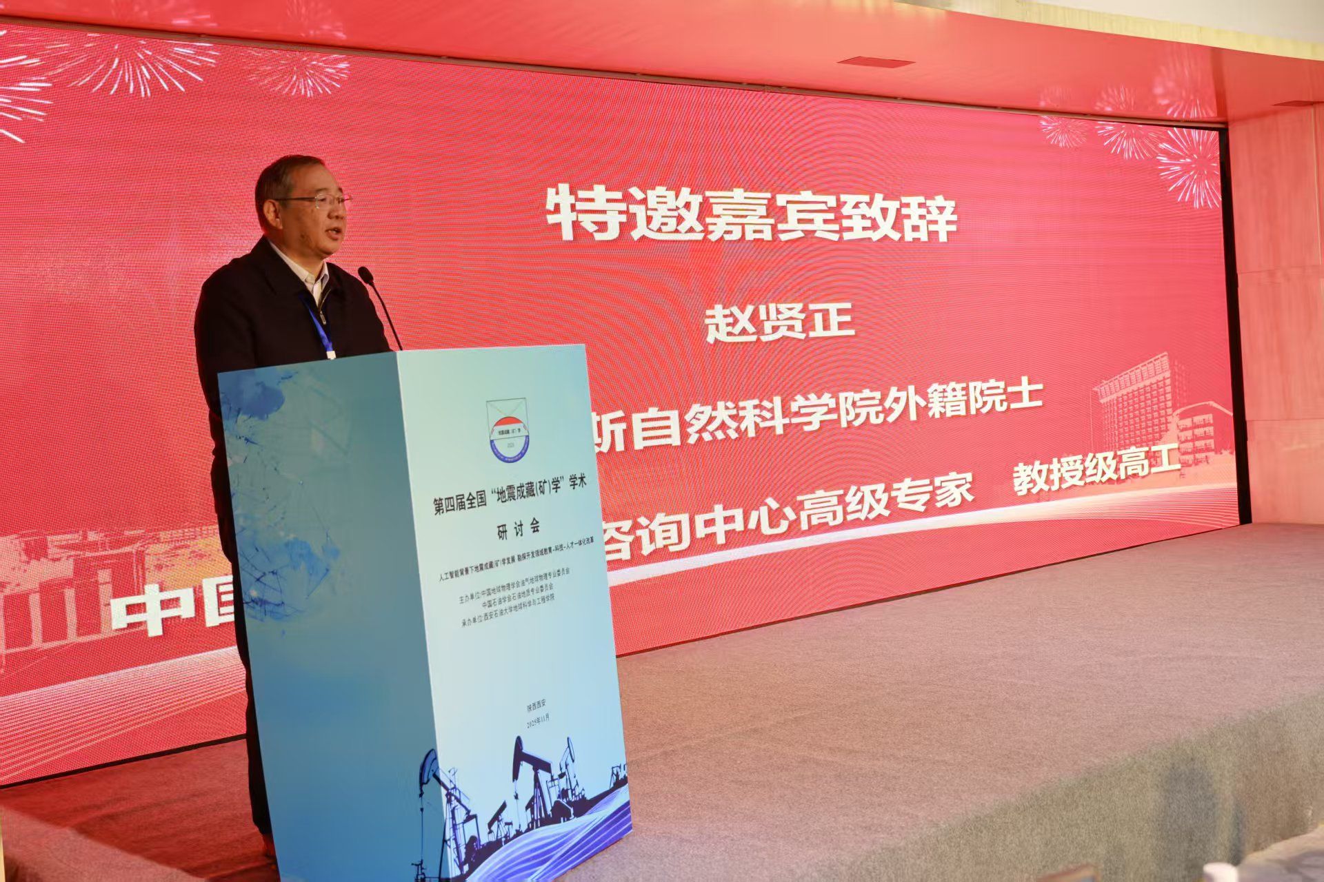 特邀嘉賓俄羅斯自然科學(xué)院外籍院士、中國(guó)石油集團(tuán)咨詢中心高級(jí)專家趙賢正教授代表會(huì)議主辦單位致辭。趙賢正表示,地震成藏(礦)學(xué)自2009年提出以來(lái),已在理論與技術(shù)上取得顯著進(jìn)展,成為指導(dǎo)復(fù)雜地質(zhì)條件下油氣勘探的重要支撐,并呼吁廣大科技工作者加強(qiáng)學(xué)科交叉與產(chǎn)學(xué)研合作,推動(dòng)該學(xué)科向縱深發(fā)展,為我國(guó)能源勘探開(kāi)發(fā)提供更強(qiáng)有力的理論和技術(shù)保障。