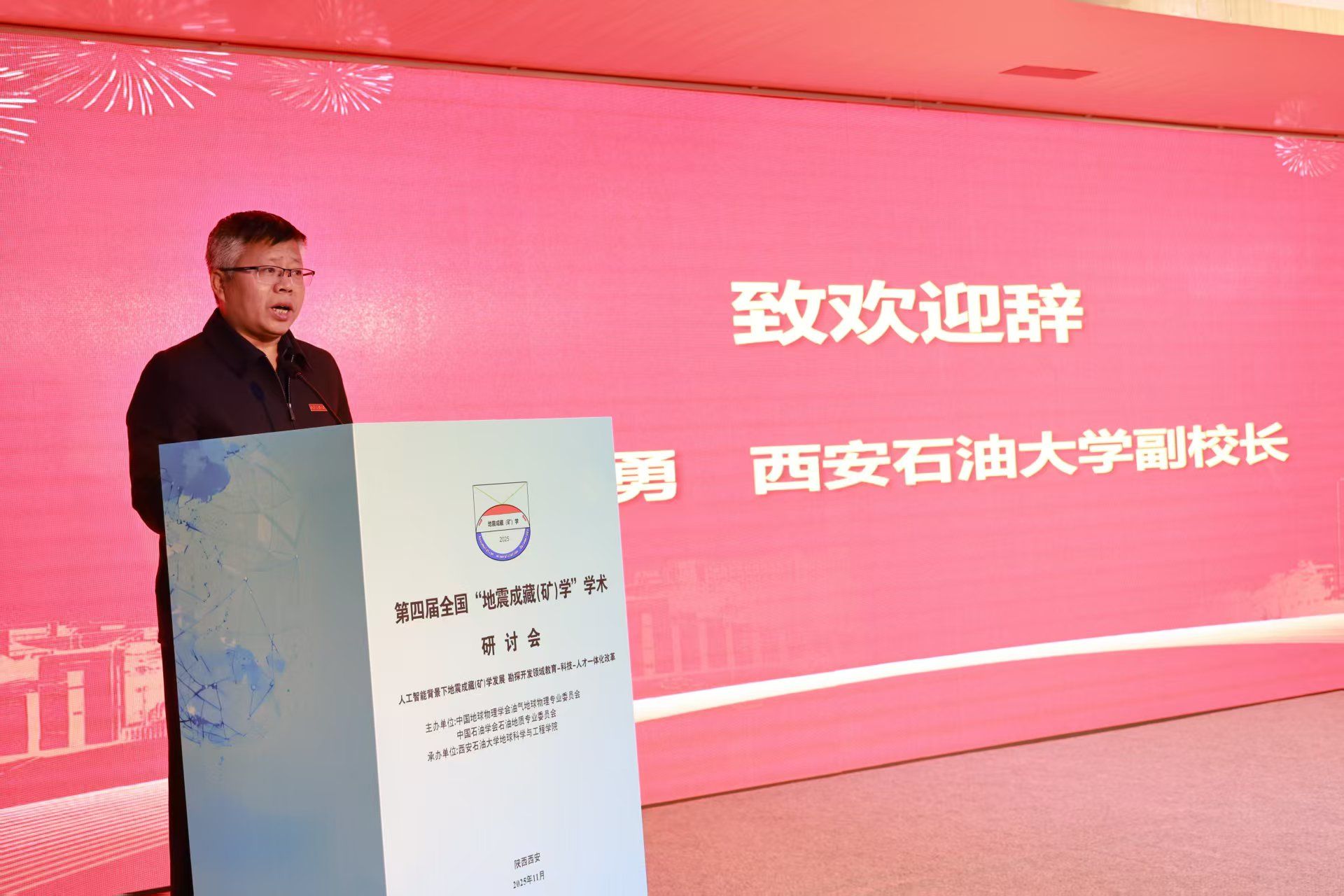 我校副校長(zhǎng)張驍勇代表會(huì)議承辦單位向與會(huì)嘉賓表示熱烈歡迎,并表示,地震成藏(礦)學(xué)作為一門融合了現(xiàn)代油氣成藏(成礦)理論與先進(jìn)地球物理技術(shù)的新興交叉學(xué)科,正憑借其獨(dú)特的技術(shù)優(yōu)勢(shì)與理論價(jià)值,成為破解復(fù)雜地質(zhì)條件下能源勘探難題的關(guān)鍵力量,為行業(yè)高質(zhì)量發(fā)展提供了重要支撐。面對(duì)能源安全新形勢(shì),推動(dòng)地震成藏(礦)學(xué)與人工智能等前沿技術(shù)融合,是服務(wù)國(guó)家戰(zhàn)略需求的必然選擇。