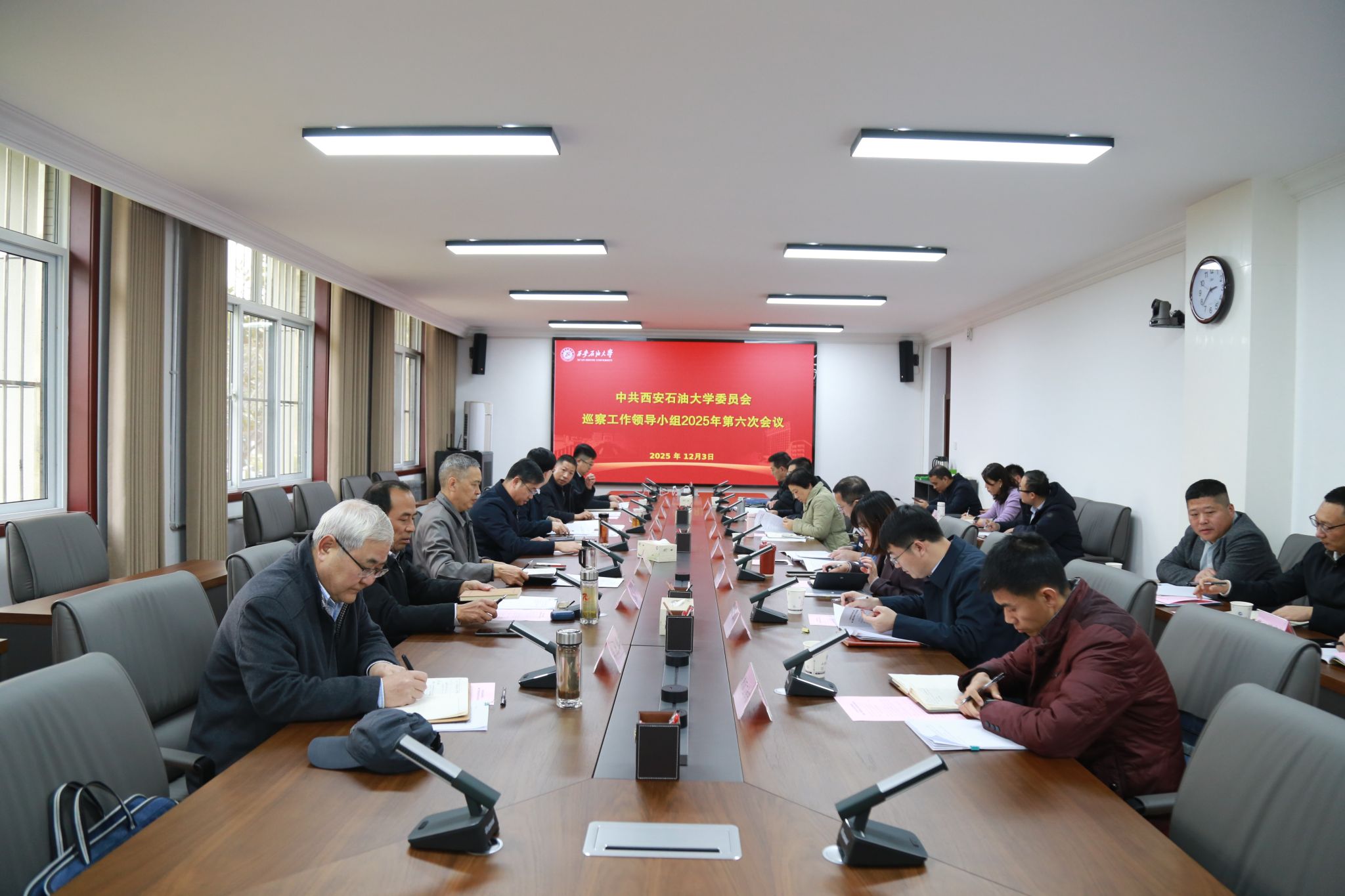 12月3日下午,學(xué)校黨委巡察工作領(lǐng)導(dǎo)小組在鄠邑校區(qū)辦公樓第三會(huì)議室召開(kāi)2025年第六次會(huì)議,聽(tīng)取第三屆黨委第二輪巡察工作總體情況匯報(bào),審議四個(gè)被巡察學(xué)院黨委的巡察情況報(bào)告。校黨委副書記、校長(zhǎng)王進(jìn)富出席會(huì)議并講話。校黨委副書記、紀(jì)委書記、監(jiān)察專員,黨委巡察工作領(lǐng)導(dǎo)小組副組長(zhǎng)王輝強(qiáng)主持會(huì)議。學(xué)校黨委巡察工作領(lǐng)導(dǎo)小組成員單位負(fù)責(zé)人參加會(huì)議。黨委第一、第二巡察組和黨委巡察辦全體同志列席會(huì)議。