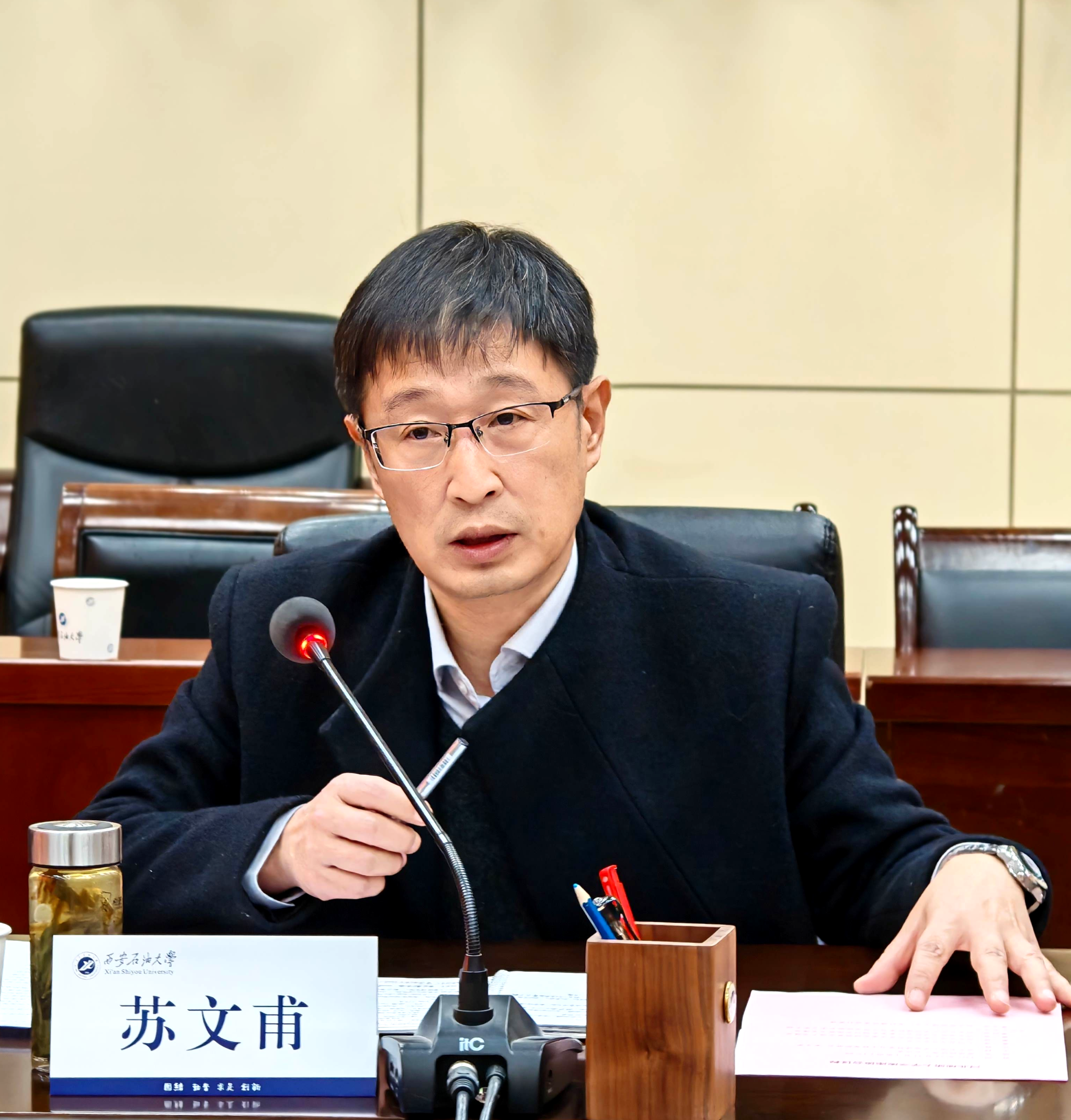 蘇文甫代表學校對任家東一行的到訪表示熱烈歡迎,并從歷史沿革、辦學特色、學科布局、發(fā)展現(xiàn)狀等方面介紹了我?;厩闆r。他表示,兩校在辦學定位和發(fā)展路徑上具有諸多相似之處,面臨著相近的發(fā)展機遇與挑戰(zhàn),希望以此次交流為契機,進一步增進了解,深化務實合作,攜手實現(xiàn)共贏發(fā)展。