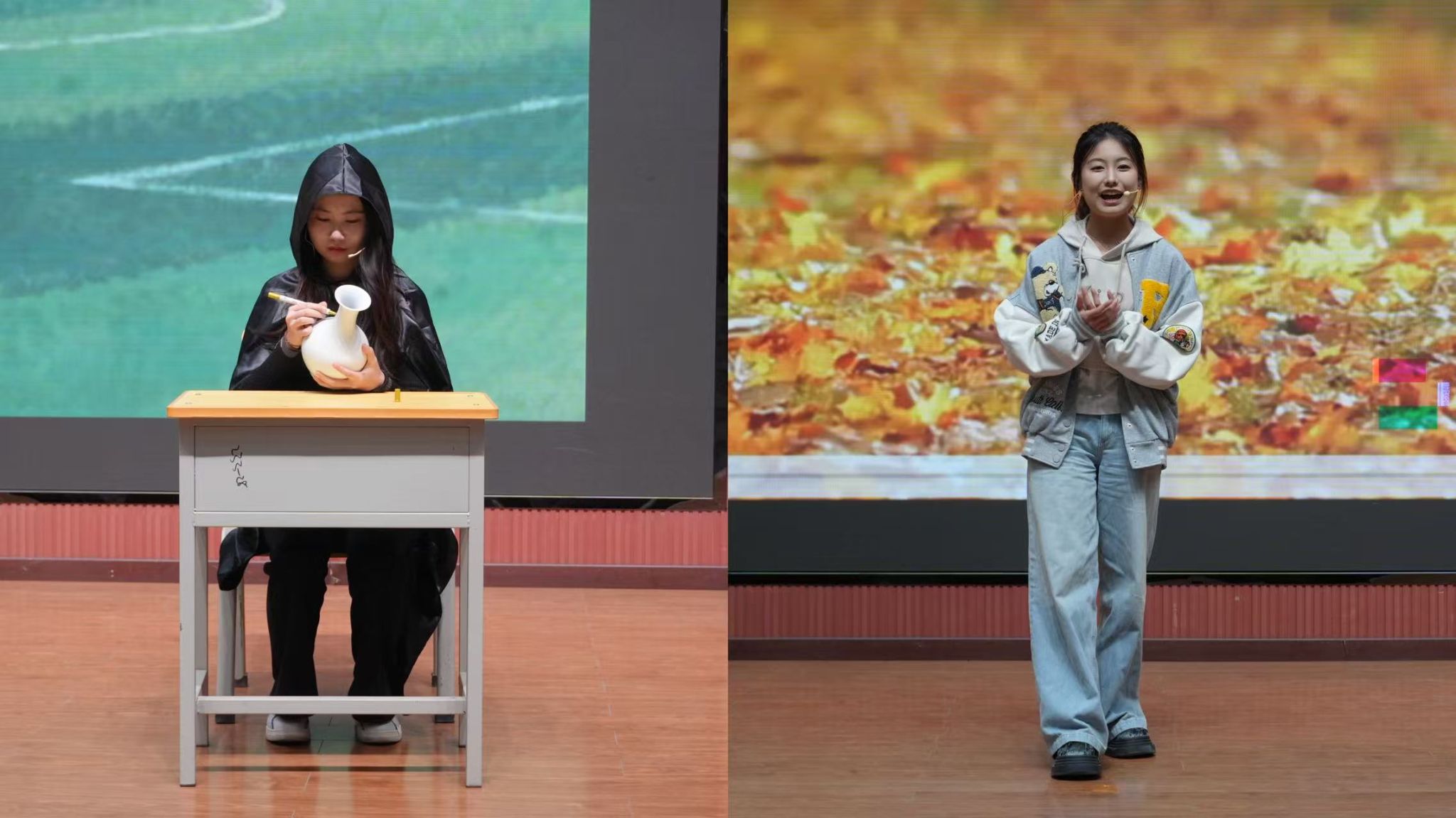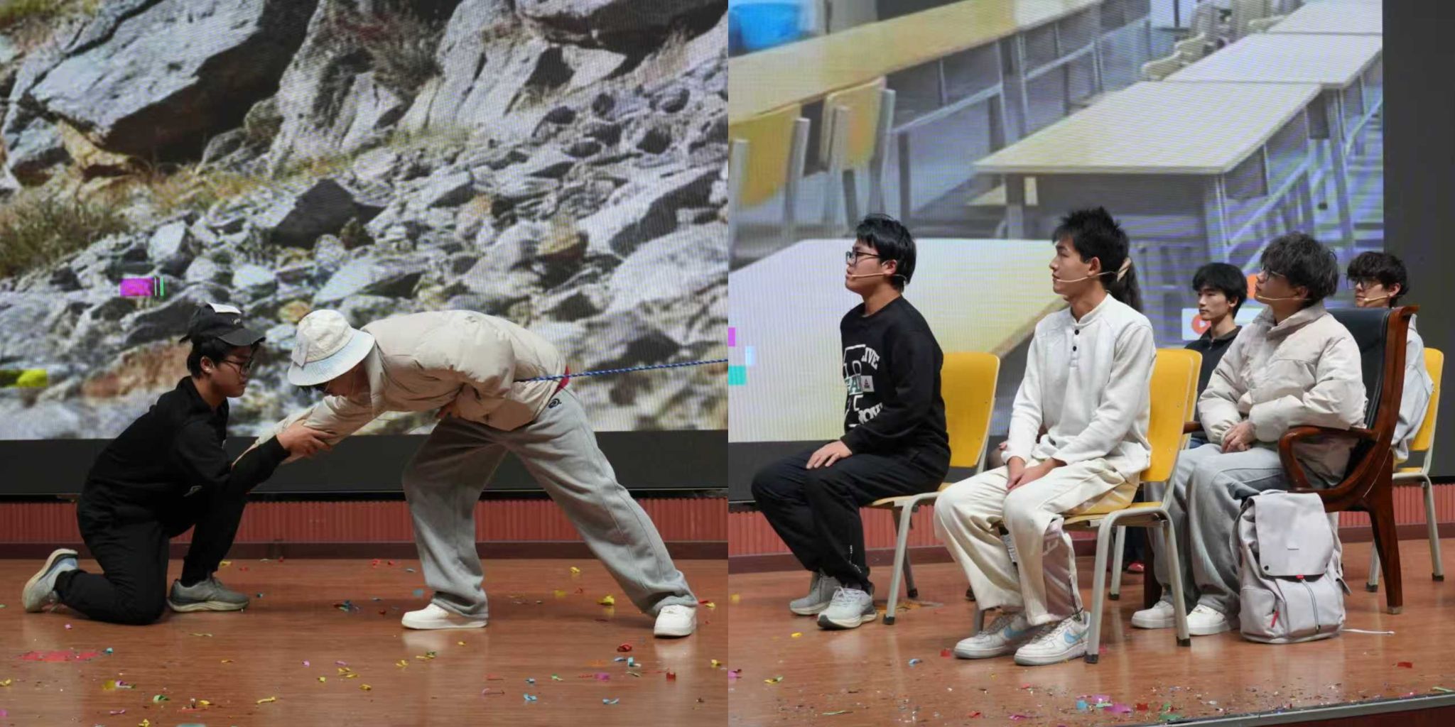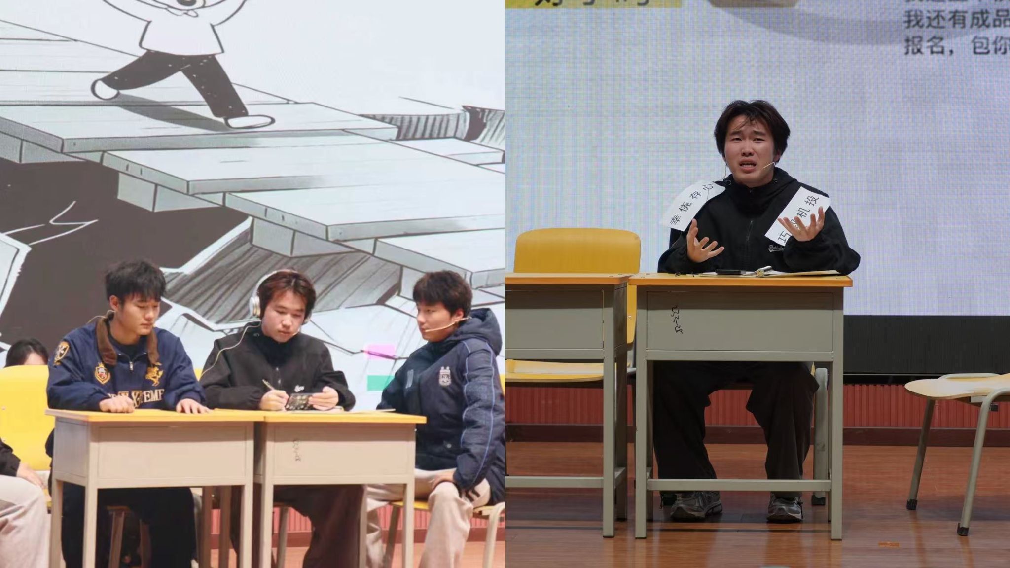 本次比賽共有16個(gè)學(xué)院17支隊(duì)伍報(bào)名,經(jīng)過前期的初賽后共有8支學(xué)院代表隊(duì)進(jìn)入決賽。八部作品以青春為底色,將大學(xué)生成長中的困惑、溫暖與蛻變搬上舞臺,在歡笑與動容的交織中,精彩得勾勒出當(dāng)代青年的心靈圖譜?!缎闹?,素履以往》聚焦大學(xué)生遇學(xué)業(yè)就業(yè)壓力陷入內(nèi)耗的熱點(diǎn)問題,演繹以情緒為核心,不斷闖關(guān),解開心結(jié),逐步自我接納與成長的歷程?!秷?jiān)守與誘禍》則圍繞大學(xué)生因保研問題誤入歧途走偏方向,在輔導(dǎo)員和同學(xué)的幫助下重拾信心,努力前進(jìn)的故事?!秲?yōu)秀標(biāo)簽的“詛咒”》以大學(xué)生面臨的“完美主義”心理枷鎖為引,展示了林薇這朵“優(yōu)秀玫瑰”如何掙脫刻板標(biāo)簽,尋回真實(shí)自我?!督鹂槨逢P(guān)注當(dāng)代大學(xué)生生活中的煩惱重重,以金繕喻人生,傳遞著青春總有磕絆,裂痕也并非缺憾的信條,金繕的哲思里,藏著關(guān)于成長的答案,直面青春挫折,傷痕終將化作成長金印?!丁凹埣稀薄芳杏谒伎茧S著當(dāng)下各種AI軟件興起,大學(xué)生在學(xué)術(shù)規(guī)范與論文寫作中,如何正確使用AI軟件,回應(yīng)社會所關(guān)心的問題?!斗俏抑摇吠ㄟ^性格迥異的兩位新生互換處事方式,因不同碰撞,又因“成為彼此”而磨合,最終尋得了成長的平衡點(diǎn)?!稛艋鹬孛鳌逢P(guān)注大學(xué)生“討好型”問題,以燈火喻本心,直面期待枷鎖,將疲憊化作擁抱自我的溫暖光痕。巖層斷層藏著地球密碼,人心隔閡藏著蛻變契機(jī),《斷層上的橋梁》講述了主角因?qū)W習(xí)問題被孤立,最終憑借自身努力和朋友幫助成功化解難題并取得了進(jìn)步的故事。