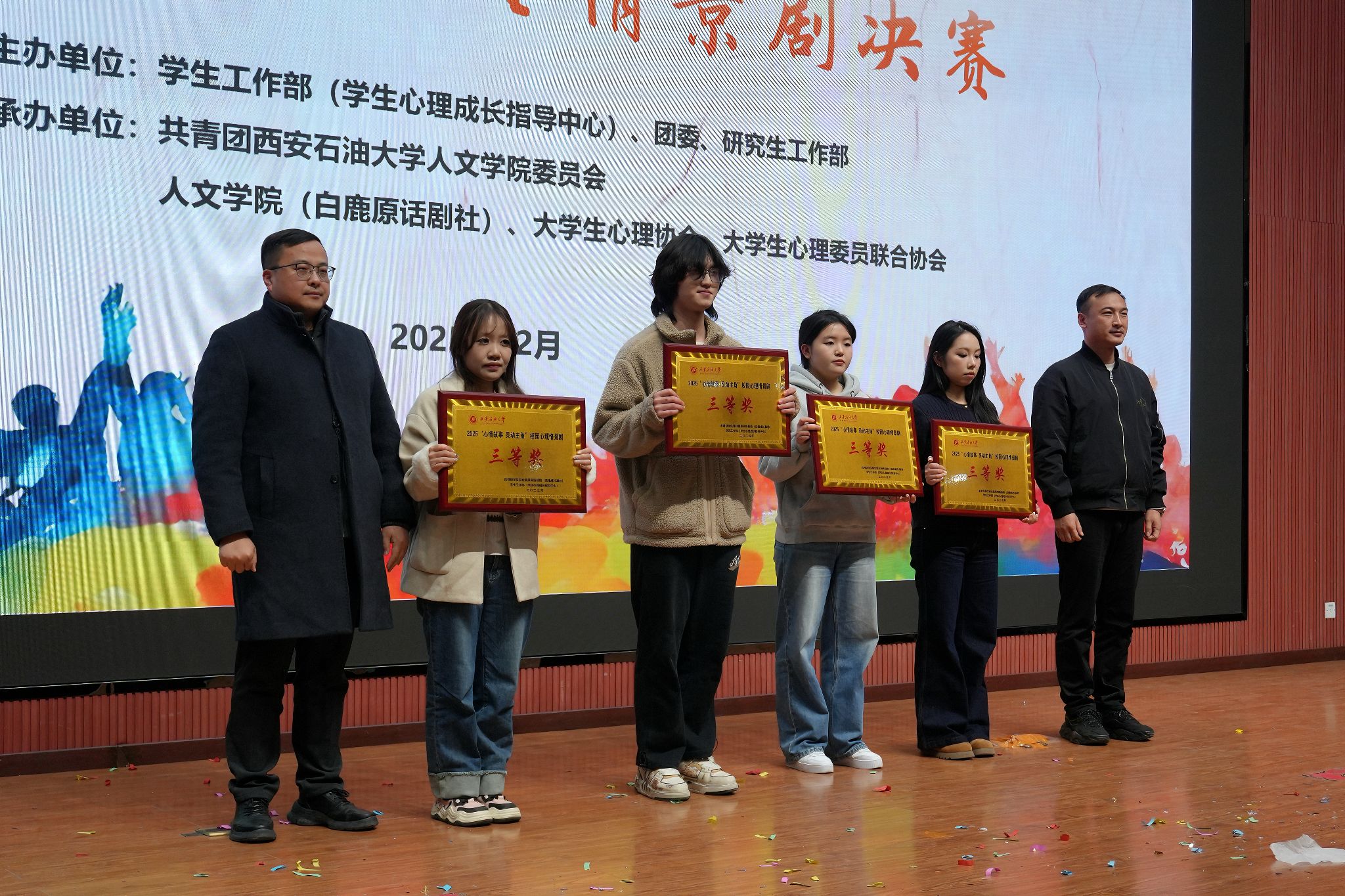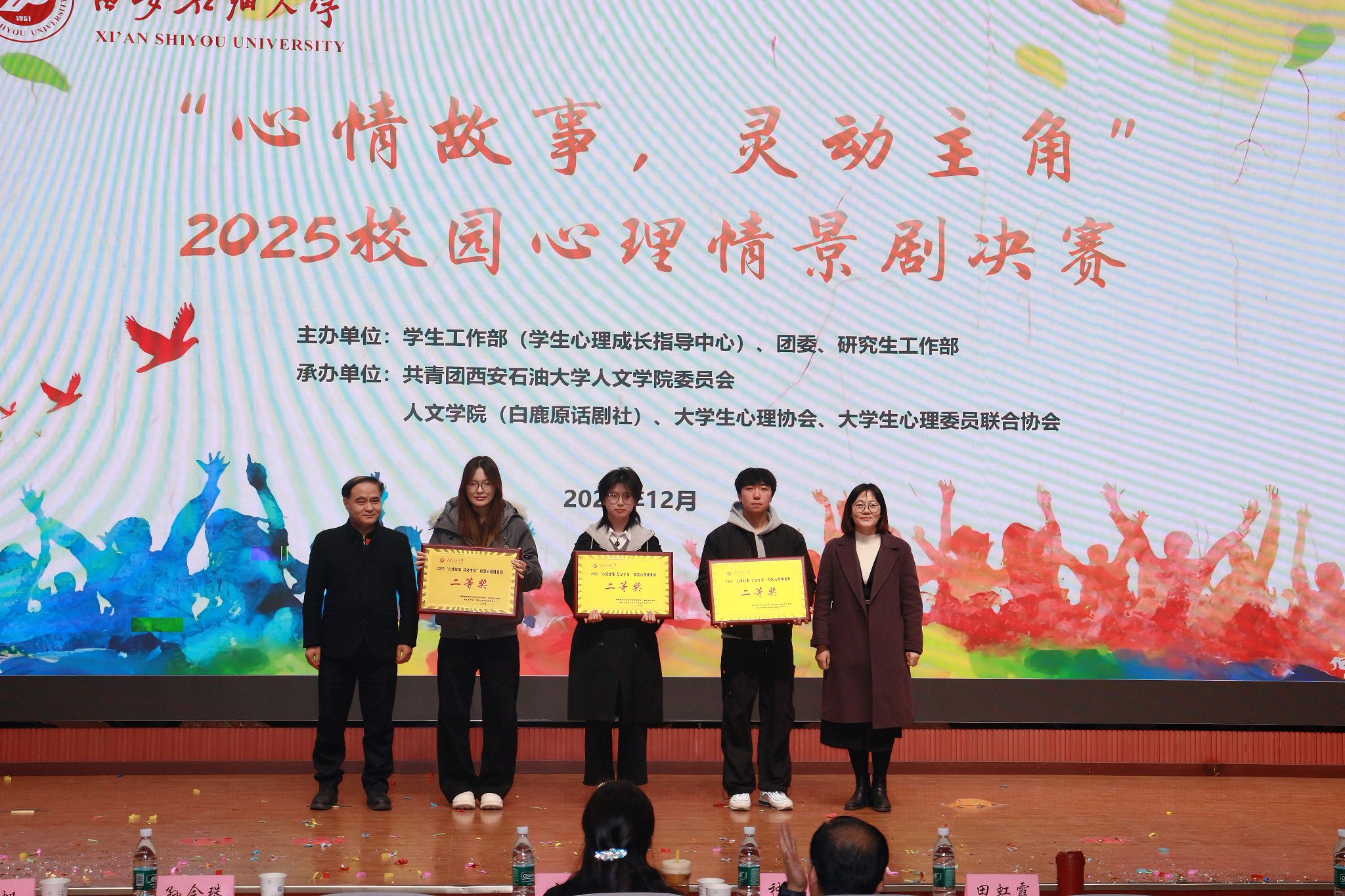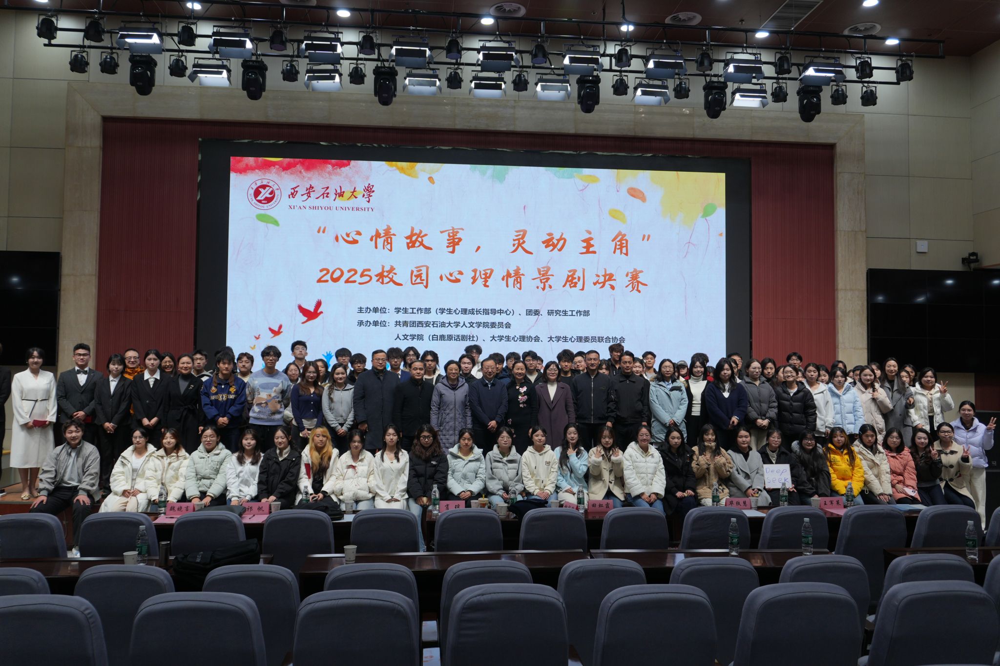 本次心理情景劇比賽由學(xué)生工作部(學(xué)生心理成長指導(dǎo)中心)、校團(tuán)委及研究生工作部主辦,人文學(xué)院、白鹿原話劇社、大學(xué)生心理協(xié)會、大學(xué)生心理委員聯(lián)合協(xié)會承辦。比賽的成功舉辦,不僅為同學(xué)們提供了一個(gè)展示自我、釋放情感的平臺,更是一次深刻的心理教育與心靈成長之旅。學(xué)校將繼續(xù)秉持“以生為本”的教育理念,不斷創(chuàng)新心理育人形式,為學(xué)生的健康成長保駕護(hù)航。