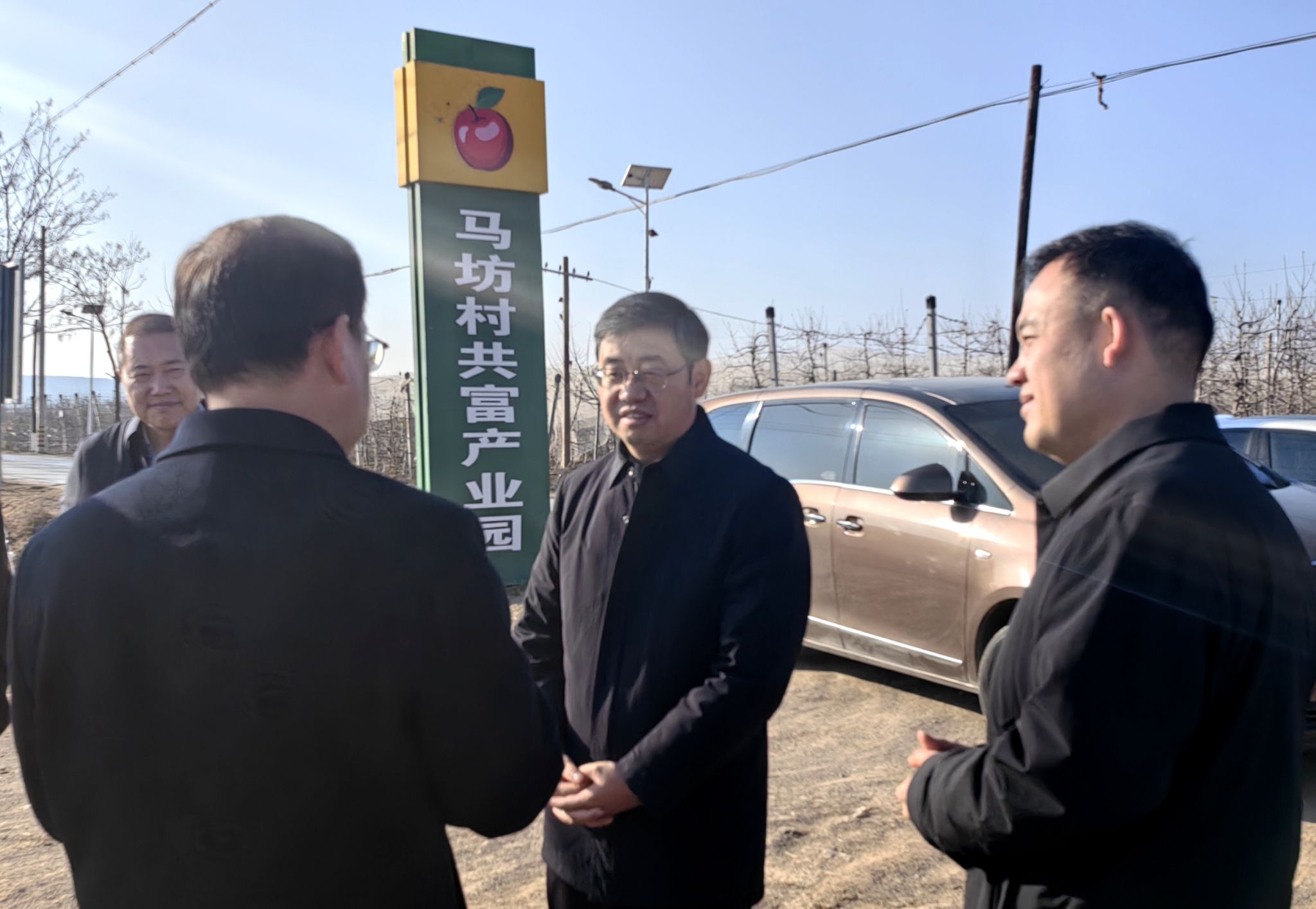 王進(jìn)富一行首先到馬坊鎮(zhèn)馬坊村進(jìn)行了走訪調(diào)研,馬坊鎮(zhèn)鎮(zhèn)長劉翔向王進(jìn)富詳細(xì)介紹了馬坊鎮(zhèn)的基本情況以及近幾年在脫貧攻堅和鄉(xiāng)村振興方面的做法和取得的成效。隨后在王振的陪同下,王進(jìn)富一行參觀了馬坊村蘋果共富產(chǎn)業(yè)園,詳細(xì)聽取了相關(guān)負(fù)責(zé)人的產(chǎn)業(yè)介紹,并與縣、鎮(zhèn)、村干部進(jìn)行了深入交流。