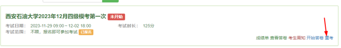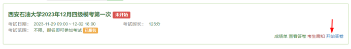 報(bào)名成功后到開考時(shí)間(11月29日09:00)點(diǎn)擊右側(cè)“開始答卷”即考試開啟。