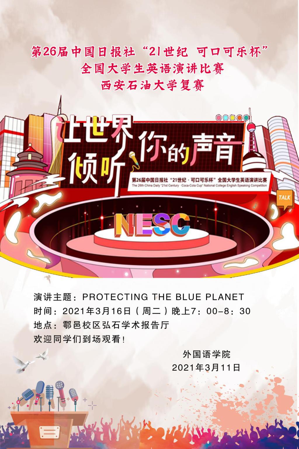 “21世紀(jì)?可口可樂杯”全國大學(xué)生英語演講比賽西安石油大學(xué)復(fù)賽通知
