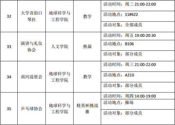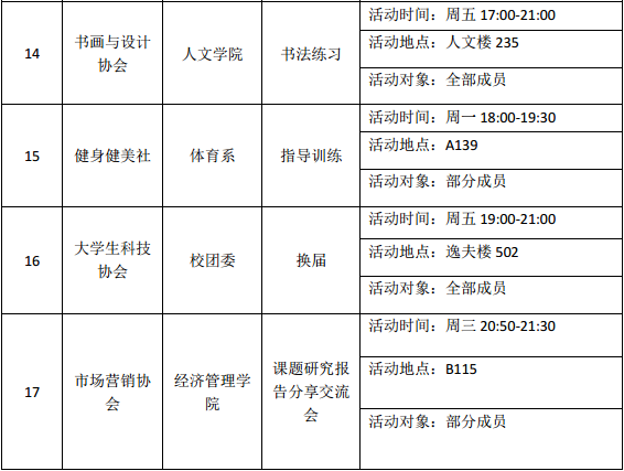 西安石油大學(xué)2016—2017學(xué)年第二學(xué)期第十四周社團(tuán)活動一覽表