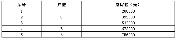 各戶型的總房款分別為: