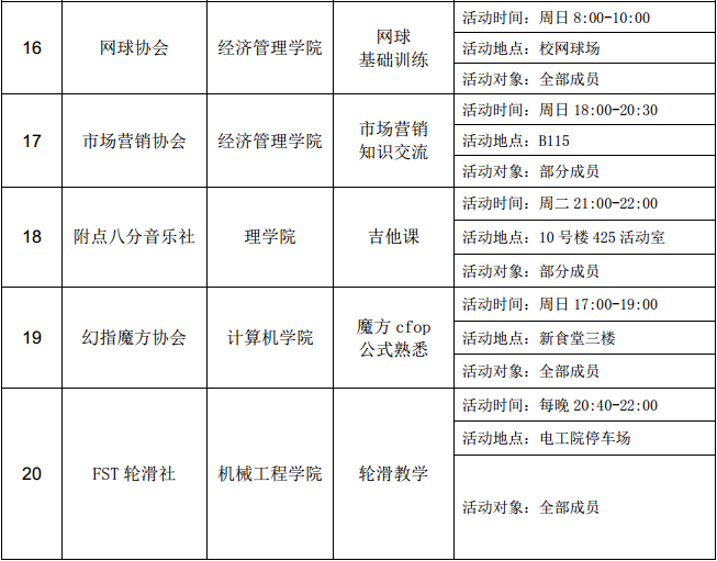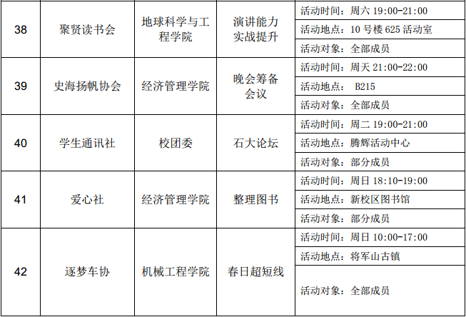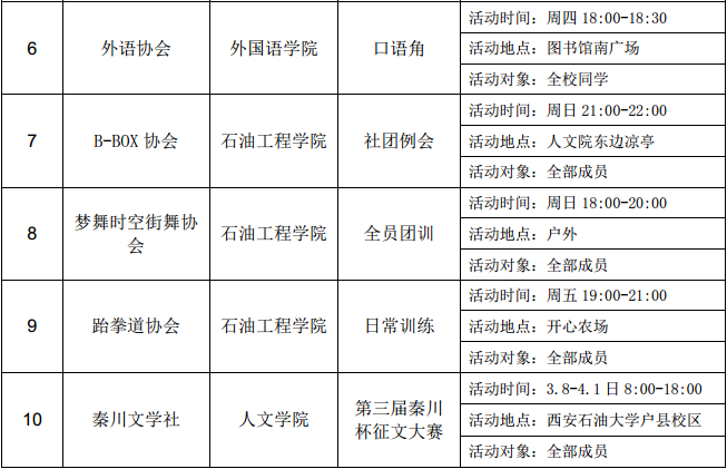 西安石油大學2016—2017學年第二學期第五周社團活動一覽表