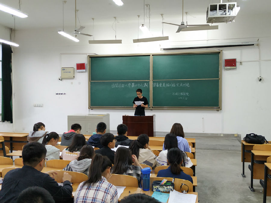 為進(jìn)一步提升學(xué)生黨員黨性修養(yǎng),充分發(fā)揮學(xué)生黨員模范帶頭作用,石油工程學(xué)院于2019年5月28日19:00整在我校鄂邑校區(qū)教學(xué)B樓B205、B208 組織了西安石油大學(xué)第二十六期預(yù)備黨員小組討論交流座談會。本次座談會分為兩個小組,分別由姚婷瑋和張晉賢同學(xué)主持,我院64名預(yù)備黨員參加了討論。