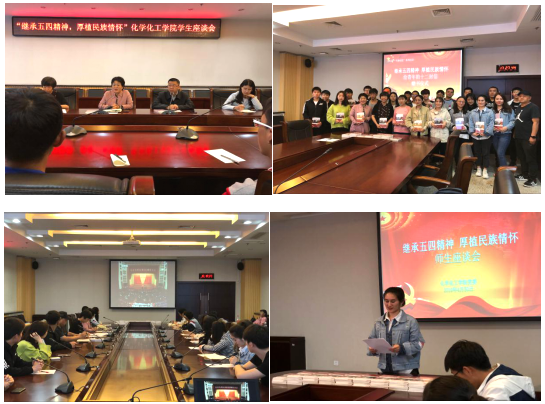 “青年興則國家興,青年強則國家強”,為慶祝建國70周年,紀念五四運動100周年,深入學(xué)習(xí)貫徹習(xí)近平新時代中國特色社會主義思想和黨的十九大精神,傳承“愛國、進步、民主、科學(xué)”的五四愛國主義精神,激勵引領(lǐng)廣大青年學(xué)子大力弘揚以愛國主義為核心的偉大民族精神,化學(xué)化工學(xué)院黨委印發(fā)《關(guān)于開展紀念五四運動100周年系列愛國主義教育的通知》,先后開展了專題學(xué)習(xí)、教學(xué)實踐、師生座談、民族聯(lián)歡、主題報告及主題黨團日活動等形式豐富的系列活動。