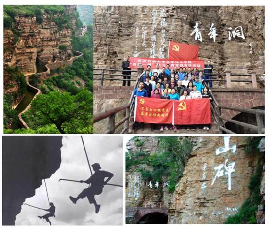 紅旗渠要從陡峭如切的狼牙山懸崖絕壁上穿過,必須鑿?fù)ㄒ粭l長達(dá)600多米的隧洞,但堅硬如鋼的石英砂石,一錘下去只能留下一個斑點(diǎn)。林縣縣委當(dāng)時決定抽調(diào)300名優(yōu)秀青壯年,經(jīng)過17個月奮戰(zhàn)開鑿,終于征服天險,完成了紅旗渠的咽喉工程,此隧洞故得名“青年洞”。全體參訓(xùn)學(xué)員從紅旗渠入口處拾級而上,穿過鷹咀山、虎口崖,沿著紅旗渠堤壩,向“青年洞”一路進(jìn)發(fā)。沿途看到當(dāng)年全靠人力推動的獨(dú)輪手推車雕像群,為了保證工程質(zhì)量立下的責(zé)任界碑,人工用一千公斤炸藥在太行山上劈開的缺口……大家感慨萬千。徒步四公里后,全體參訓(xùn)學(xué)員來到紅旗渠的咽喉工程“青年洞”口,回想著常年頂風(fēng)冒雪,抗嚴(yán)寒戰(zhàn)酷暑,修建紅旗渠的艱苦歲月,感受著時任林縣第一縣委書記楊貴、紅旗渠設(shè)計師吳祖泰烈士等事跡洗禮,全體參訓(xùn)學(xué)員心潮澎湃,為修建紅旗渠過程中突出表現(xiàn)的“自力更生、艱苦創(chuàng)業(yè)、團(tuán)結(jié)協(xié)作、無私奉獻(xiàn)”精神而深深折服。
