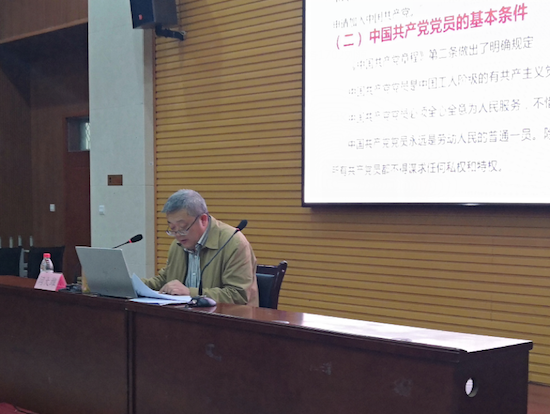 典禮結(jié)束后,閆書記以“明確共產(chǎn)黨員條件,確立遠(yuǎn)大政治追求”為題,為學(xué)員們講授黨課第一講。他從“當(dāng)代大學(xué)生為什么要入黨”展開,詳細(xì)闡述了共產(chǎn)黨員的條件、權(quán)利與義務(wù),以及入黨程序等方面內(nèi)容。他希望學(xué)員們能夠確立政治上的遠(yuǎn)大追求,樹立崇高信念,加強(qiáng)自身修養(yǎng),自愿接受黨組織的考驗(yàn),早日實(shí)現(xiàn)自己的人生目標(biāo)和理想。
