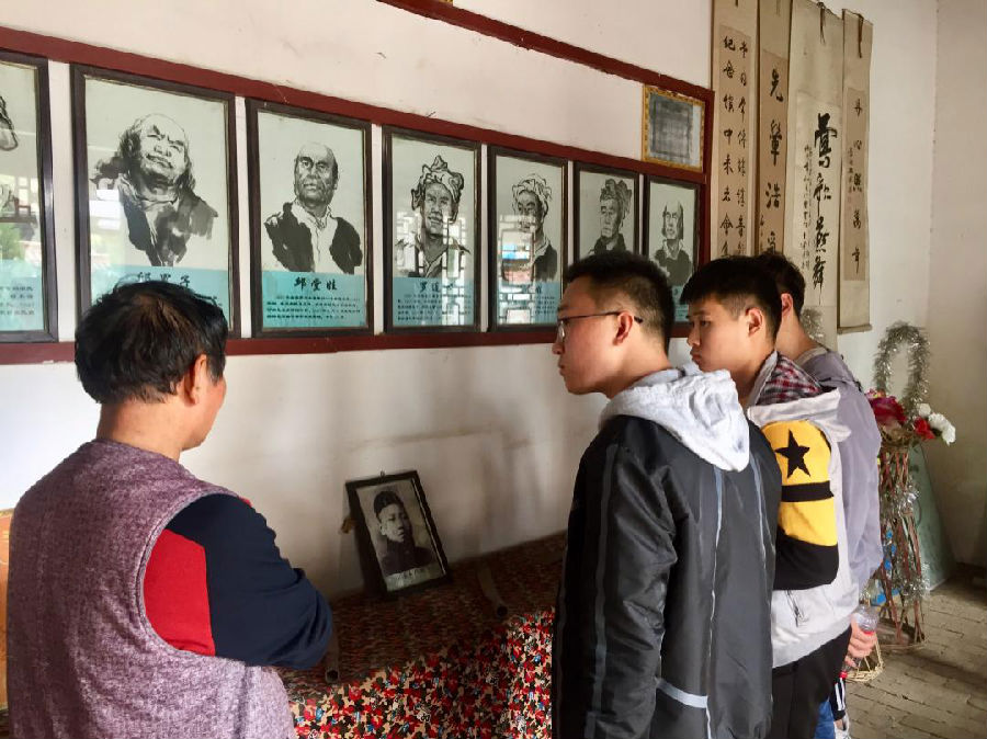村民向支部同學(xué)講解當(dāng)年的英烈事跡