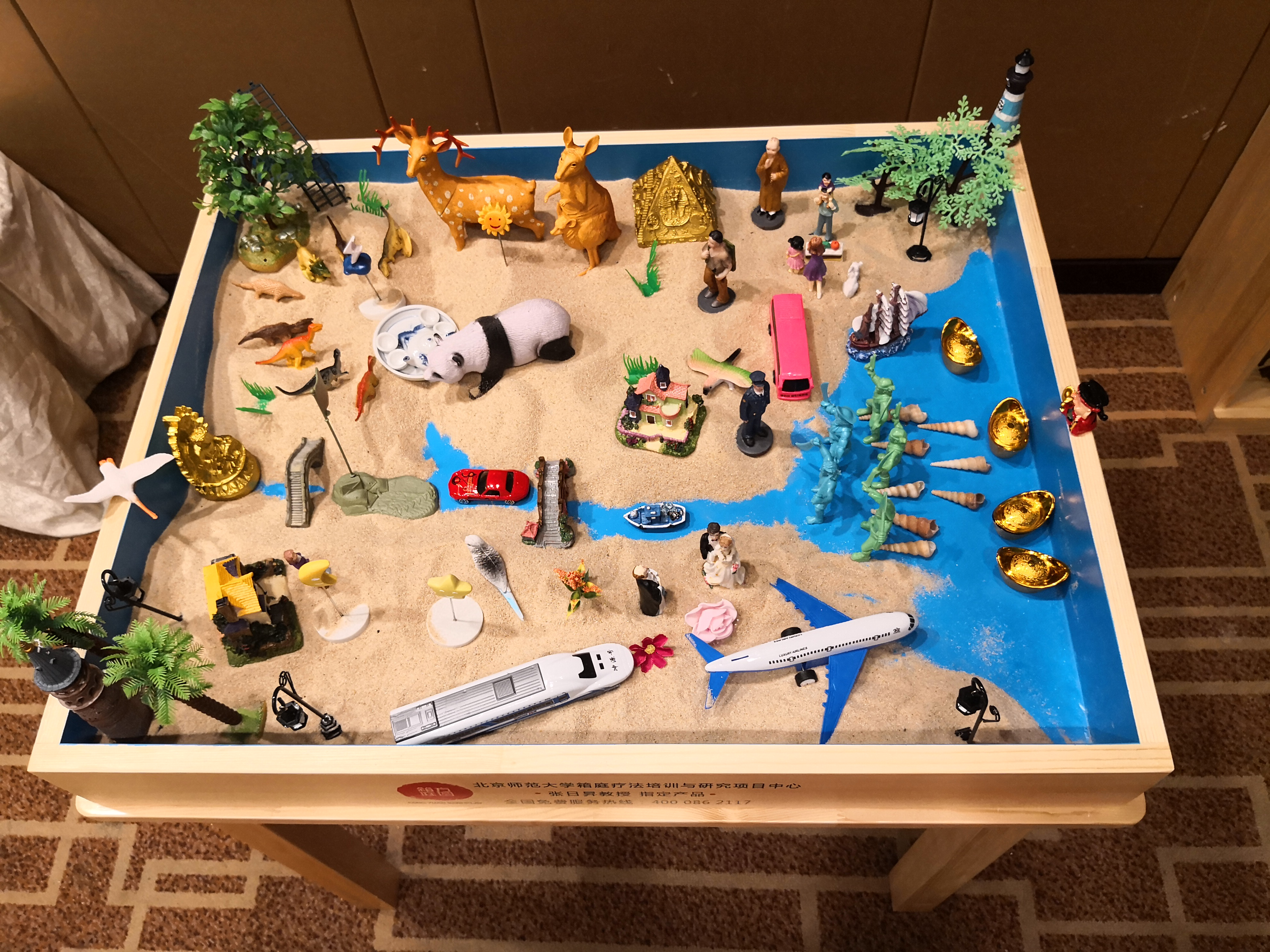箱庭療法,有人也稱沙盤游戲或沙盤療法,是在咨詢師的陪伴下,來訪者從玩具架上自由挑選沙具,在盛有細(xì)沙的特制箱子里進(jìn)行自我表現(xiàn)的一種心理療法。