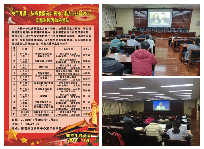 研究生院舉辦“弘揚愛國奮斗精神,建功立業(yè)新時代”專題影展