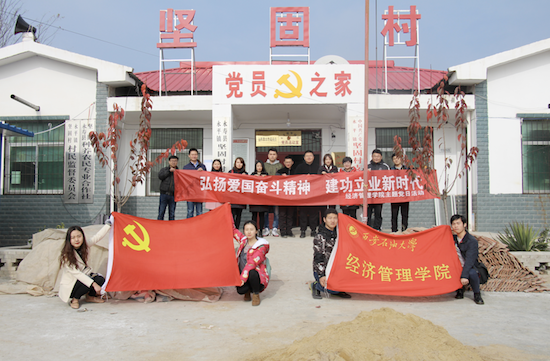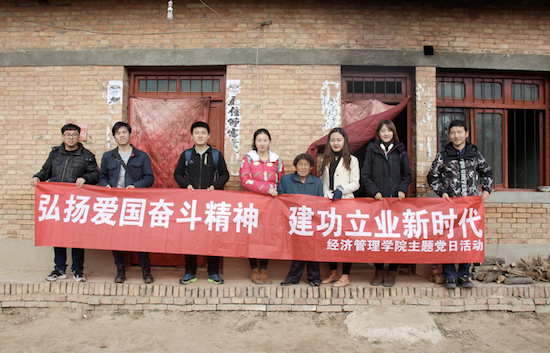 為認真貫徹落實習近平總書記對弘揚愛國奮斗精神作出的一系列重要指示和西石大黨組〔2018〕77號文件精神,按照學院具體工作部署,11月13日,經(jīng)濟管理學院“弘揚愛國奮斗精神、建功立業(yè)新時代”主題黨日活動在學校對口幫扶的永壽縣永平鎮(zhèn)堅固村開展。經(jīng)濟管理學院黨委副書記趙海濤、學院全體學工干部、學生黨員代表近20人參加。