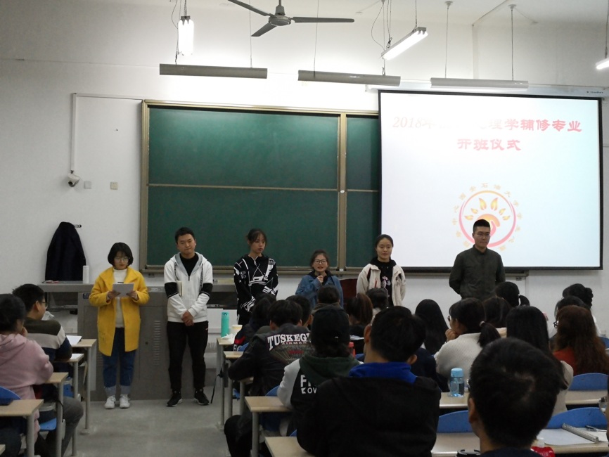 易和平副處長介紹了我校輔修專業(yè)的歷史、發(fā)展、對學(xué)校工作的貢獻(xiàn),結(jié)合親身經(jīng)歷說明了輔修專業(yè)對人的全面發(fā)展的意義,他表態(tài),教務(wù)處會全力支持心理學(xué)輔修專業(yè)的建設(shè),最后,他代表學(xué)校向全體學(xué)生提出了學(xué)業(yè)與管理的要求,并預(yù)祝大家學(xué)業(yè)順利。作為本次輔修專業(yè)的開設(shè)方,肖瓊主任首先感謝學(xué)校對2018年應(yīng)用心理學(xué)輔修專業(yè)的大力支持,對課程設(shè)置做了簡短介紹,她提出應(yīng)用心理學(xué)是目前我校唯一在開的輔修專業(yè),是“油緣”心理為學(xué)校學(xué)科建設(shè)做貢獻(xiàn)的實際行動,勉力同學(xué)們合理安排時間,爭取主修專業(yè)與輔修專業(yè)雙贏發(fā)展。,隨后,學(xué)生心理成長指導(dǎo)中心的任課教師分別結(jié)合自身成長,從專業(yè)視角、專業(yè)素養(yǎng)、專業(yè)發(fā)展等方面對心理學(xué)進(jìn)行了闡釋。最后,全體班委會成員一一表態(tài)要齊心協(xié)力,為為班級同學(xué)做好服務(wù),促進(jìn)同學(xué)們專業(yè)發(fā)展。