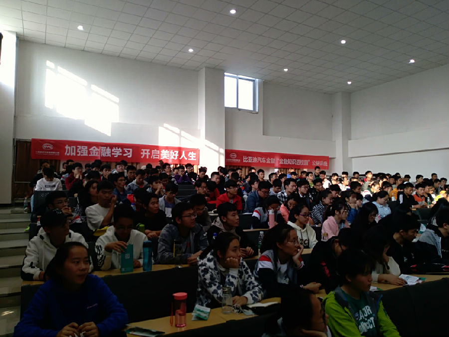 11月1日下午4點,地球科學與工程學院在鄠邑校區(qū)石工地科樓115教室舉辦主題為“金融知識及風險防范分享”報告會。本次報告會由李化杰老師主持,學院特邀比亞迪汽車金融有限公司公益報告團隊擔任主講,學院260余名同學參加了報告會。