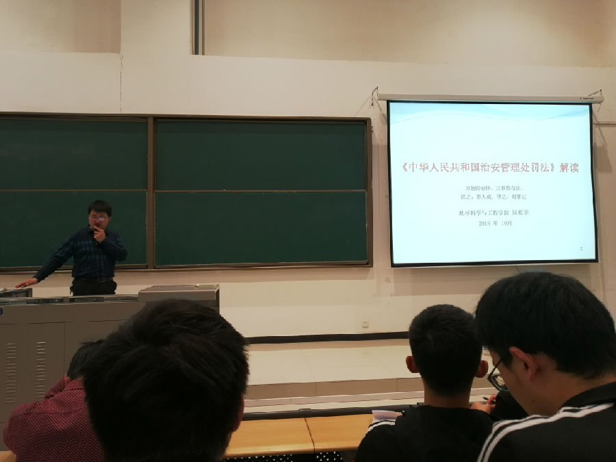 10月28日晚,地球科學(xué)與工程學(xué)院2016級(jí)在石工地科樓115教室召開“知法守法,感恩思源,爭(zhēng)做合格大學(xué)生”主題年級(jí)大會(huì),2016級(jí)輔導(dǎo)員周毅華老師及全體學(xué)生參加大會(huì)。