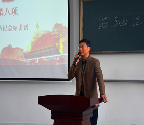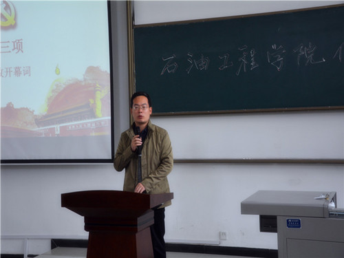 為深入學(xué)習(xí)貫徹習(xí)近平新時(shí)代中國特色社會主義思想和黨的十九大精神,落實(shí)全國高校思想政治工作會議精神,進(jìn)一步推進(jìn)“兩學(xué)一做”學(xué)習(xí)教育常態(tài)化制度化,響應(yīng)學(xué)校要求,推動(dòng)我院學(xué)生黨支部建設(shè),提高學(xué)生黨支部組織生活的質(zhì)量和效果,增強(qiáng)學(xué)生黨支部的創(chuàng)造力、凝聚力和戰(zhàn)斗力,石油工程學(xué)院黨委于2018年10月24日中午12:30在鄠邑校區(qū)石工地科樓115教室舉行了學(xué)生黨支部優(yōu)秀組織生活創(chuàng)新案例評選活動(dòng)。學(xué)院黨委書記馬勇、黨委副書記張建高、黨委組織委員孫會珠、化學(xué)化工學(xué)院黨委兼職組織員屈敏佳、經(jīng)濟(jì)管理學(xué)院黨委兼職組織員武威受邀參加并擔(dān)任評委,學(xué)院全體輔導(dǎo)員及130余名學(xué)生黨員也參加了活動(dòng)。