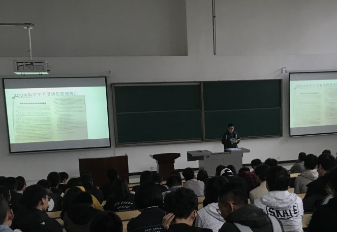 會上,邱老師首先對學(xué)生進(jìn)行了安全意識教育,帶領(lǐng)學(xué)生們共同學(xué)習(xí)了《西安石油大學(xué)本科學(xué)生請銷假制度》,明確了日常穩(wěn)定安全管理相關(guān)制度要求的重要性,要求同學(xué)們嚴(yán)格遵守節(jié)假日去向統(tǒng)計、周末晚點名、上課考勤等制度。
