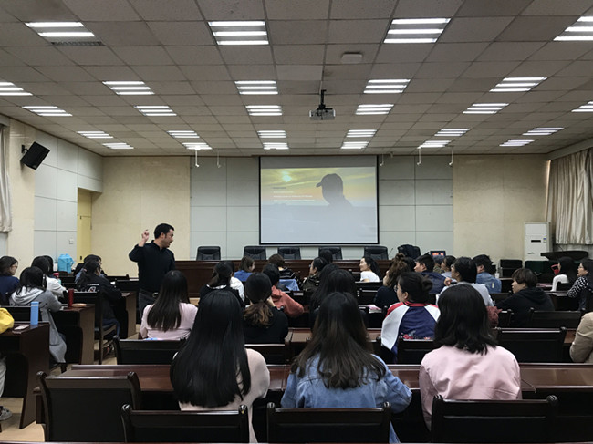 廖嘉良博士結(jié)合自身的海外學習與生活經(jīng)歷,通過幾組寓意深刻的視頻,全程使用英文向同學們生動地講述了在跨文化交流中人們應(yīng)該遵守的基本原則,以及他對夢想、激情、真理的理解。同時提出在研究生生活中學會思考的三個前提:第一,要有激情去追尋知識;第二,要拷問自己的人生到底想要什么;第三,要自己拿主意,敢于捍衛(wèi)自己的觀點。在最后的互動環(huán)節(jié)中,同學們熱情高漲,現(xiàn)場掌聲不斷。