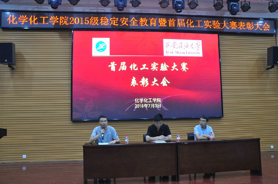 7月3日下午,化學化工學院在鄠邑校區(qū)就業(yè)指導中心多功能廳舉行2015級穩(wěn)定安全教育暨首屆化工實驗大賽表彰大會。學院學管辦主任董丙劍,輔導員陳景輝、張少良出席了大會。學院2015級全體學生參加了大會。