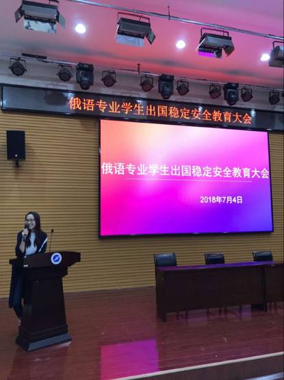 2018年7月4日晚19:30,我院于三號院系樓就業(yè)指導(dǎo)中心舉行2018年俄語專業(yè)學(xué)生出國穩(wěn)定安全教育大會,本次大會主講人為外國語學(xué)院2016級輔導(dǎo)員李洋甜老師,我院16級俄語專業(yè)學(xué)生參加了此次大會。