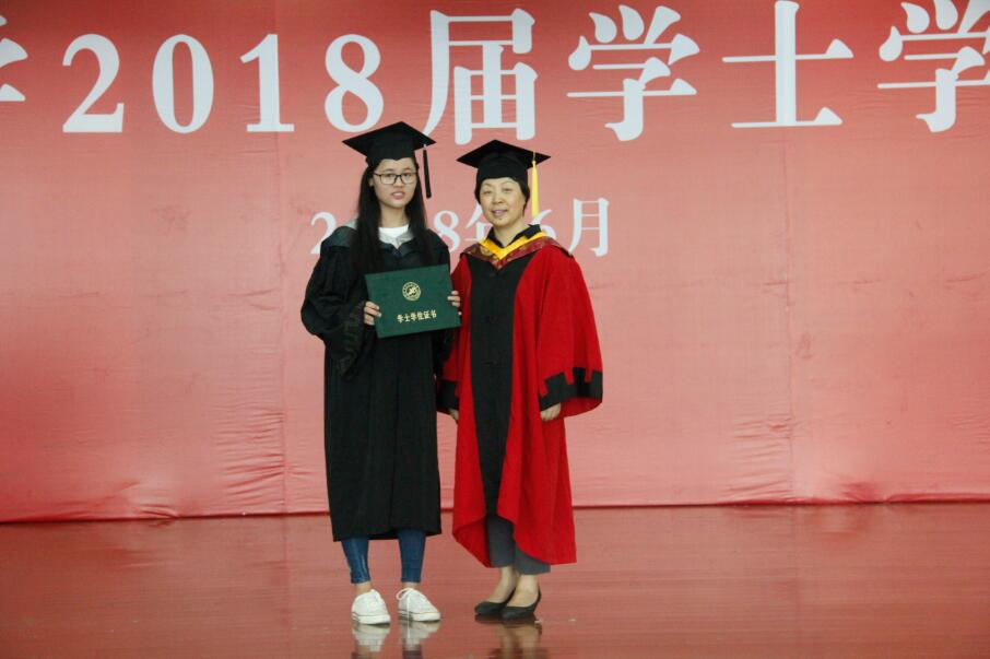 隨后,授位儀式正式開(kāi)始,在歡快的音樂(lè)聲中,獲得學(xué)士學(xué)位的同學(xué)們一一上臺(tái),由教授委員會(huì)各位導(dǎo)師授予學(xué)位,并合影留念。