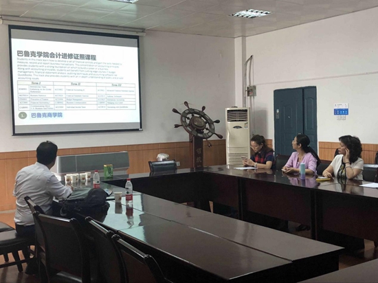 牛志文先生首先向大家詳細解讀了由三角會計集團和美國巴魯克商學(xué)院聯(lián)合進行的全方面美國會計師培訓(xùn)項目。該項目包含了美國商學(xué)院會計進修、美國會計師培訓(xùn)和在美會計實習(xí)工作安排,全方位助力會計專業(yè)學(xué)生的專業(yè)技能提升和工作就業(yè)。隨后,牛志文先生介紹了三角會計集團的業(yè)務(wù)范圍和人才組成,表達了求賢若渴的心情,誠摯的邀請經(jīng)濟管理學(xué)院的畢業(yè)生去三角會計集團就業(yè)。經(jīng)濟管理學(xué)院和美國三角集團就研究生企業(yè)導(dǎo)師合作、畢業(yè)生就業(yè)推薦、在校生赴美實習(xí)、聯(lián)合科研項目等四方面達成了初步合作意向,雙方期望能夠強溝通合作,進一步提高研究生培養(yǎng)質(zhì)量。