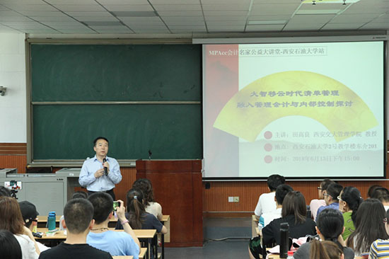 6月13日下午3點(diǎn),由中國(guó)會(huì)計(jì)學(xué)會(huì)和全國(guó)會(huì)計(jì)專業(yè)學(xué)位研究生教育指導(dǎo)委員會(huì)共同主辦、西安石油大學(xué)經(jīng)濟(jì)管理學(xué)院承辦的MPAcc會(huì)計(jì)名家公益大講堂,在雁塔校區(qū)東階202教室隆重開講。西安交通大學(xué)管理學(xué)院田高良教授蒞臨現(xiàn)場(chǎng),為200多位師生帶來(lái)“大智移云時(shí)代清單管理融入管理會(huì)計(jì)與內(nèi)部控制探討”的主題講座。