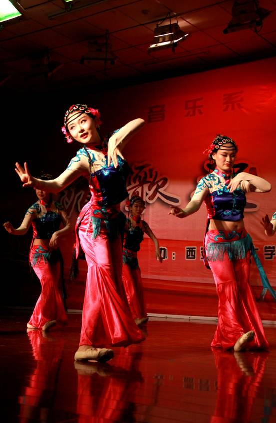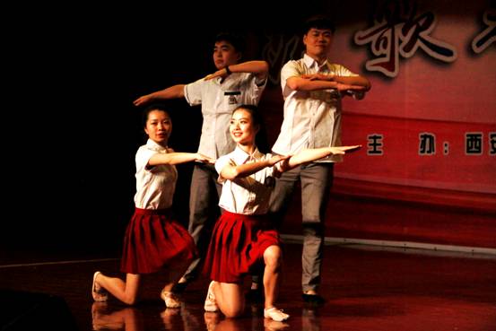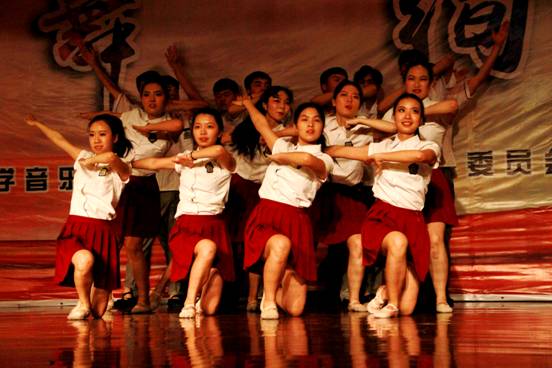 本場(chǎng)晚會(huì)由我系宋淼老師總策劃,全程指導(dǎo)學(xué)生排演節(jié)目并制定演出方案。教師與學(xué)生攜手演繹,李陽(yáng)、田立老師演唱歌曲《我愛(ài)你中國(guó)》為本場(chǎng)晚會(huì)拉開(kāi)了序幕,校工會(huì)教師舞蹈隊(duì)的《C哩C哩、茉莉花》將現(xiàn)代及古典舞蹈相結(jié)合,展現(xiàn)了我校熱愛(ài)舞蹈的教工風(fēng)采;現(xiàn)代舞蹈、薩克斯重奏《雨中曲》、影視歌曲聯(lián)唱等曲目贏得了觀眾的陣陣掌聲;周偉老師指導(dǎo)的音樂(lè)系合唱團(tuán)演唱的大合唱《長(zhǎng)恨歌—仙樂(lè)風(fēng)飄處處聞》、《十送紅軍》大氣磅礴,;民樂(lè)合奏、女生小合唱、傣族舞和獨(dú)唱更是體現(xiàn)了我系學(xué)生專業(yè)水準(zhǔn);由我系舞蹈教師何云老師自編自導(dǎo)的舞蹈《京劇臉譜》,舞蹈動(dòng)作大氣到位、服裝道具美輪美奐、編舞專業(yè)化程度高,讓人耳目一新,震撼全場(chǎng);結(jié)尾舞《輝煌明天》將晚會(huì)推向了高潮,晚會(huì)在全場(chǎng)同學(xué)的掌聲中圓滿落下帷幕。