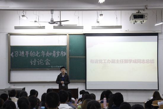 第三部分為總結(jié)篇。由黨工辦副主任郭學(xué)成同志總結(jié)發(fā)言,他指出《習(xí)近平的七年知青歲月》一書用真實的歷史細(xì)節(jié)講述了習(xí)近平總書記當(dāng)年“苦其心志、勞其筋骨、餓其體膚、空乏其身”的歷練故事,再現(xiàn)了習(xí)近平總書記知青時期的艱苦生活和成長歷程,與會學(xué)生黨員和入黨積極分子應(yīng)該繼續(xù)深入學(xué)習(xí),認(rèn)真閱讀,樹立正確的世界觀、人生觀和價值觀,努力拼搏,實現(xiàn)自己的奮斗目標(biāo)。