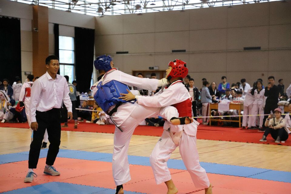 為提高學(xué)生身體素質(zhì),豐富學(xué)生校園生活,加強(qiáng)高校間合作與交流。我校跆拳道協(xié)會(huì)于2018年5月6日在西安理工大學(xué)曲江校區(qū)學(xué)生活動(dòng)中心參加了“西安理工大學(xué)首屆跆拳道高校邀請(qǐng)賽”。我校跆拳道協(xié)會(huì)在社團(tuán)指導(dǎo)老師,石油工程學(xué)院2017級(jí)輔導(dǎo)員孫浩哲老師的精心指導(dǎo)下,組成由副會(huì)長張?jiān)酵瑢W(xué)擔(dān)任領(lǐng)隊(duì),徐旸、廖碧霞和雷飛飛等17名同學(xué)擔(dān)任隊(duì)員的代表隊(duì)參加比賽。