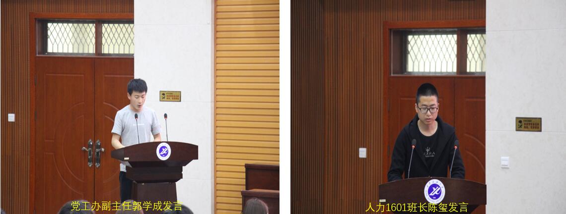 接著,黨工辦副主任郭學(xué)成及人力資源管理專業(yè)的三位黨員發(fā)展對象,分別發(fā)表了自己對于黨的十九大新思想的體會與感悟;人力1601班長陳璽就學(xué)生干部如何做到砥礪奮進這一問題談了自己的幾點心得。