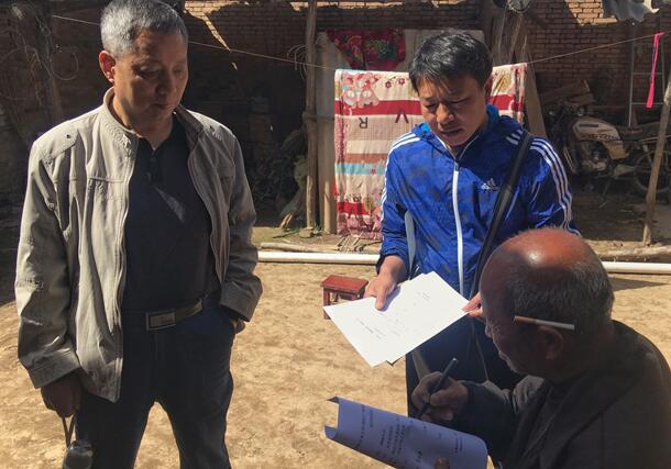 現(xiàn)場(chǎng)查看幫扶對(duì)象雞舍建設(shè)情況
