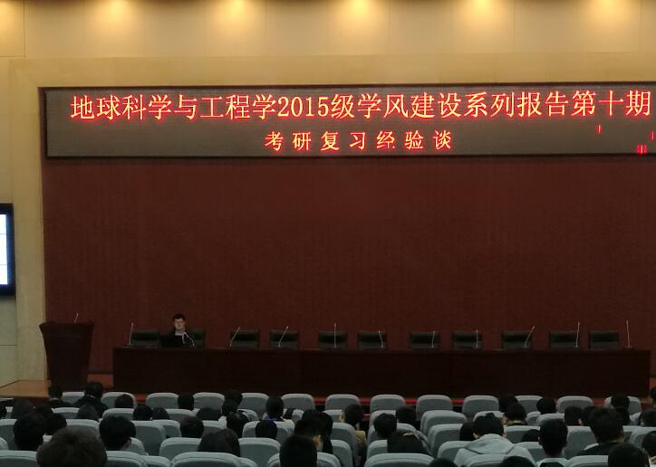 地球科學(xué)與工程學(xué)院舉辦2015級第十期學(xué)風(fēng)建設(shè)系列報告