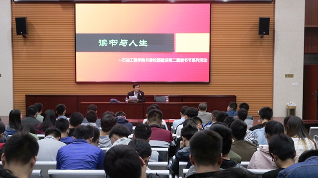 按照學(xué)校和學(xué)院關(guān)于“書香校園”建設(shè)第二屆讀書節(jié)活動實施方案的要求,石油工程學(xué)院“書香校園”建設(shè)主題報告于2018年3月30日晚19:00在鄠邑校區(qū)人文經(jīng)管樓118就業(yè)大廳舉行。報告特邀陜西青年作家鄭長春主講,學(xué)生管理辦公室主任孫會珠、輔導(dǎo)員朱戰(zhàn)威及260余名同學(xué)參加,報告主題為《讀書與人生》。