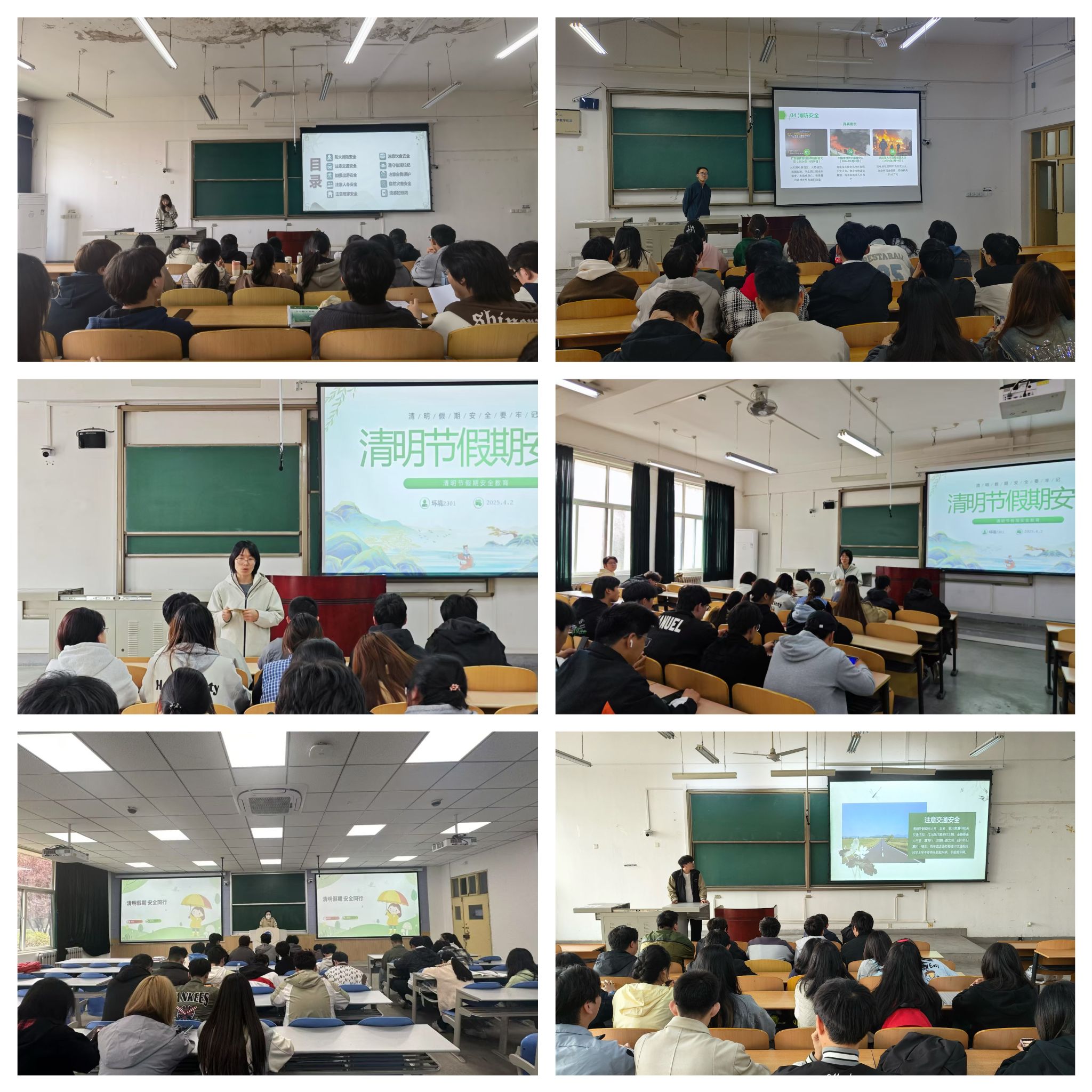 學(xué)院黨委高度重視假期安全工作,成立專項(xiàng)工作領(lǐng)導(dǎo)小組,召開(kāi)安全工作專題部署會(huì),細(xì)化制定《假期安全管理工作方案》,建立“學(xué)院-年級(jí)-班級(jí)-宿舍”四級(jí)聯(lián)動(dòng)機(jī)制。3月28日-4月3日期間,學(xué)院各年級(jí)分批次召開(kāi)清明假期安全教育會(huì),實(shí)現(xiàn)學(xué)生全覆蓋。各年級(jí)輔導(dǎo)員結(jié)合典型案例、互動(dòng)問(wèn)答等方式,重點(diǎn)圍繞“五防一?!保ǚ涝p騙、防火患、防事故、防傳染病、防網(wǎng)貸,保出行安全)開(kāi)展警示教育,組織簽訂安全承諾書(shū)1383份。特別針對(duì)假期出游的同學(xué),詳細(xì)解析交通法規(guī)、應(yīng)急避險(xiǎn)等知識(shí)。同時(shí)開(kāi)展宿舍安全大檢查,排查整改安全隱患,切實(shí)做到防患于未然。