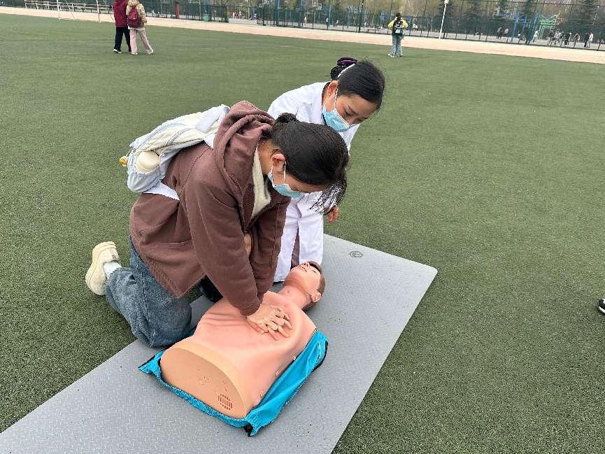 培訓(xùn)主要圍繞突發(fā)情況下的自救互救展開(kāi),校醫(yī)院主管護(hù)師、陜西省救護(hù)師資宋彥霞、解姣系統(tǒng)講解了單人徒手心肺復(fù)蘇術(shù)(CPR)、自動(dòng)體外除顫儀(AED)的使用、氣道異物梗阻急救、外傷包扎、中暑及燒燙傷應(yīng)急處置等常用急救知識(shí)。通過(guò)“理論講解+操作示范+分組實(shí)操”的遞進(jìn)式教學(xué),確保學(xué)員逐步掌握技術(shù)要領(lǐng)。