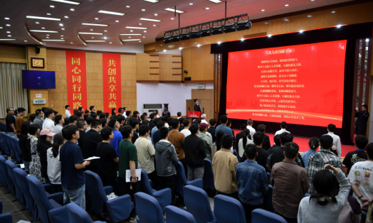 大會間隙,播放了學院往屆研究生畢業(yè)生錄制的祝福視頻。大會圓滿完成各項既定任務,通過民主投票選舉產(chǎn)生了石油工程學院第一屆研究生會委員會。石油工程學院第一屆研究生會委員會全體成員,面向國旗就職宣誓。第一屆研究生會委員會代表張斌向大會作工作展望。最后,大會在全場齊唱的《我為祖國獻石油》中落下帷幕。