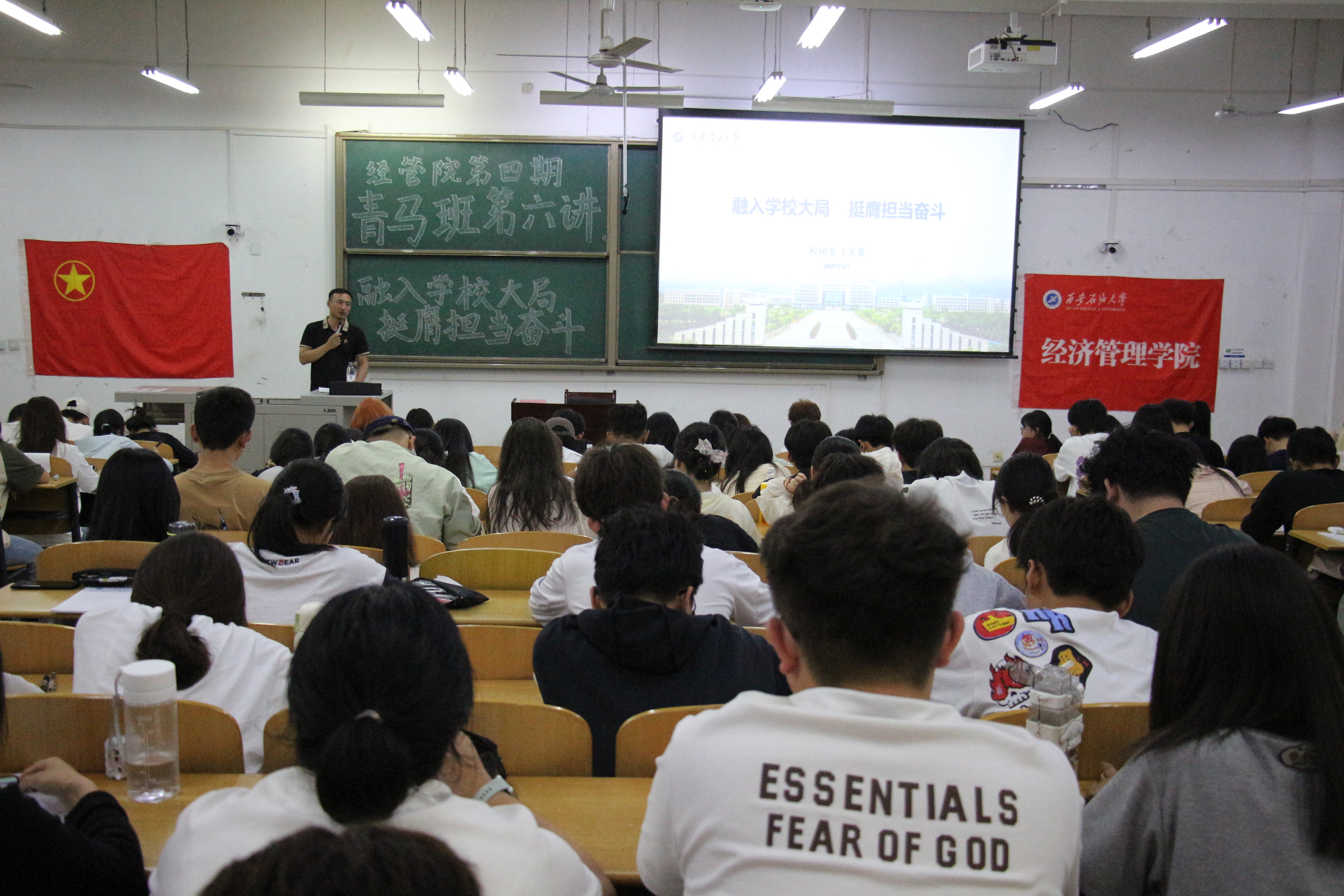 5月6日,經(jīng)濟(jì)管理學(xué)院第四期“青年馬克思主義者培養(yǎng)工程”學(xué)生干部培訓(xùn)班第六講在鄠邑校區(qū)博思樓112教室舉辦,校團(tuán)委副書記王軍策應(yīng)邀擔(dān)任主講,2024級(jí)參訓(xùn)學(xué)生干部160余人參加本次課程。