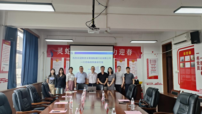 5月23日,陜西友聯(lián)國際旅行社長安分公司總經(jīng)理田小鵬、計調吳敏一行來我院開展合作交流活動,活動在雁塔校區(qū)華油能源樓603會議室舉行,外國語學院黨委書記張建高、副書記邱嶺,學工辦、多語種教學部負責人,教師代表、學生代表參加。