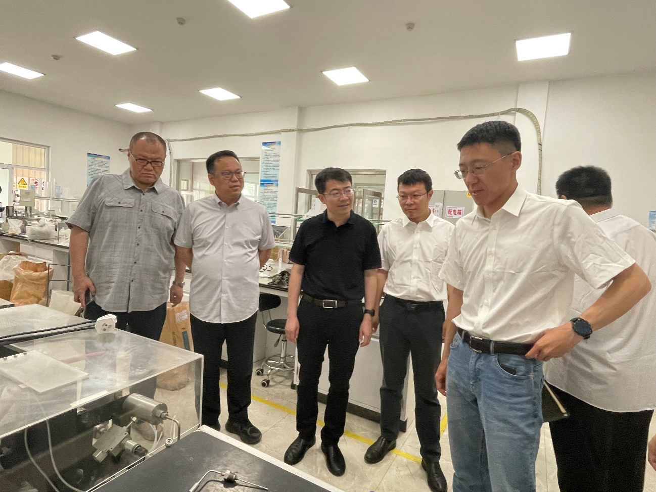 揭牌儀式后,高小明一行參觀了渤海鉆探第一固井公司工程技術研發(fā)中心實驗室和自研產品展廳。